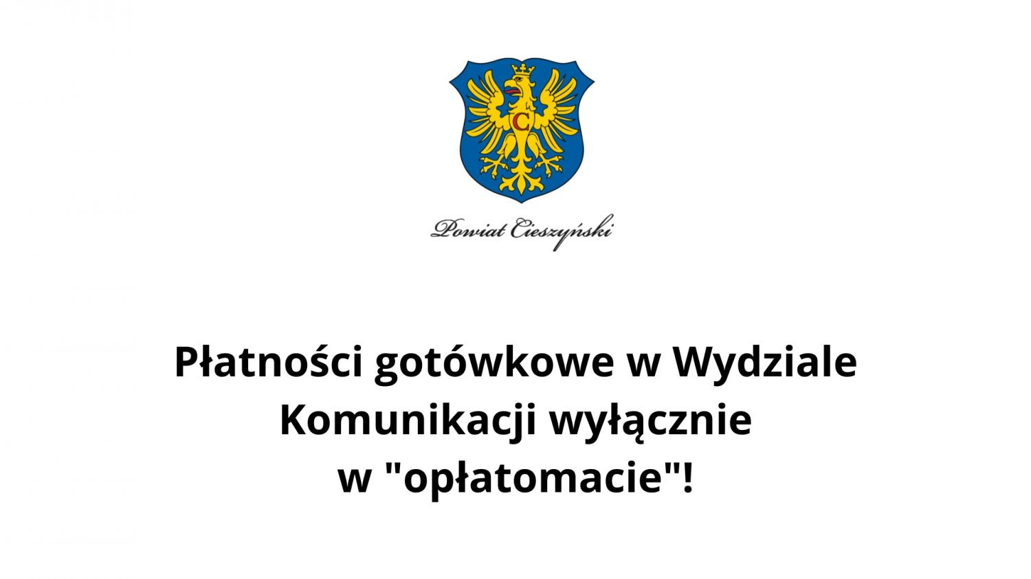 Płatności gotówkowe w Wydziale Komunikacji wyłącznie w "opłatomacie"!