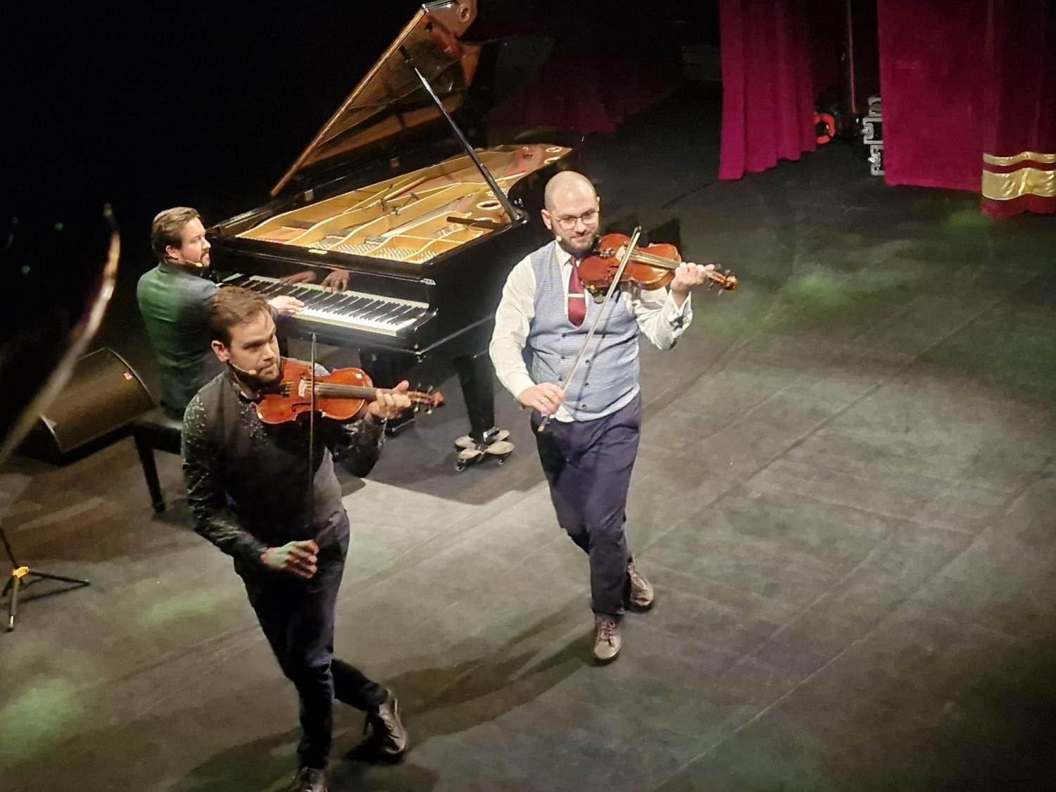 Na scenie zaprezentowali się: pianista Jacek Obstarczyk oraz skrzypkowie Krzysztof Kokoszewski i Jacek Stolarczyk. Ich znakomita technika, wyrazistość interpretacyjna i muzyczna charyzma sprawiły, że publiczność mogła całkowicie zanurzyć się w wyjątkowym brzmieniu tria. Artyści stworzyli spójną, poruszającą i pełną energii całość, pozostawiając słuchaczom niezapomniane wrażenia.