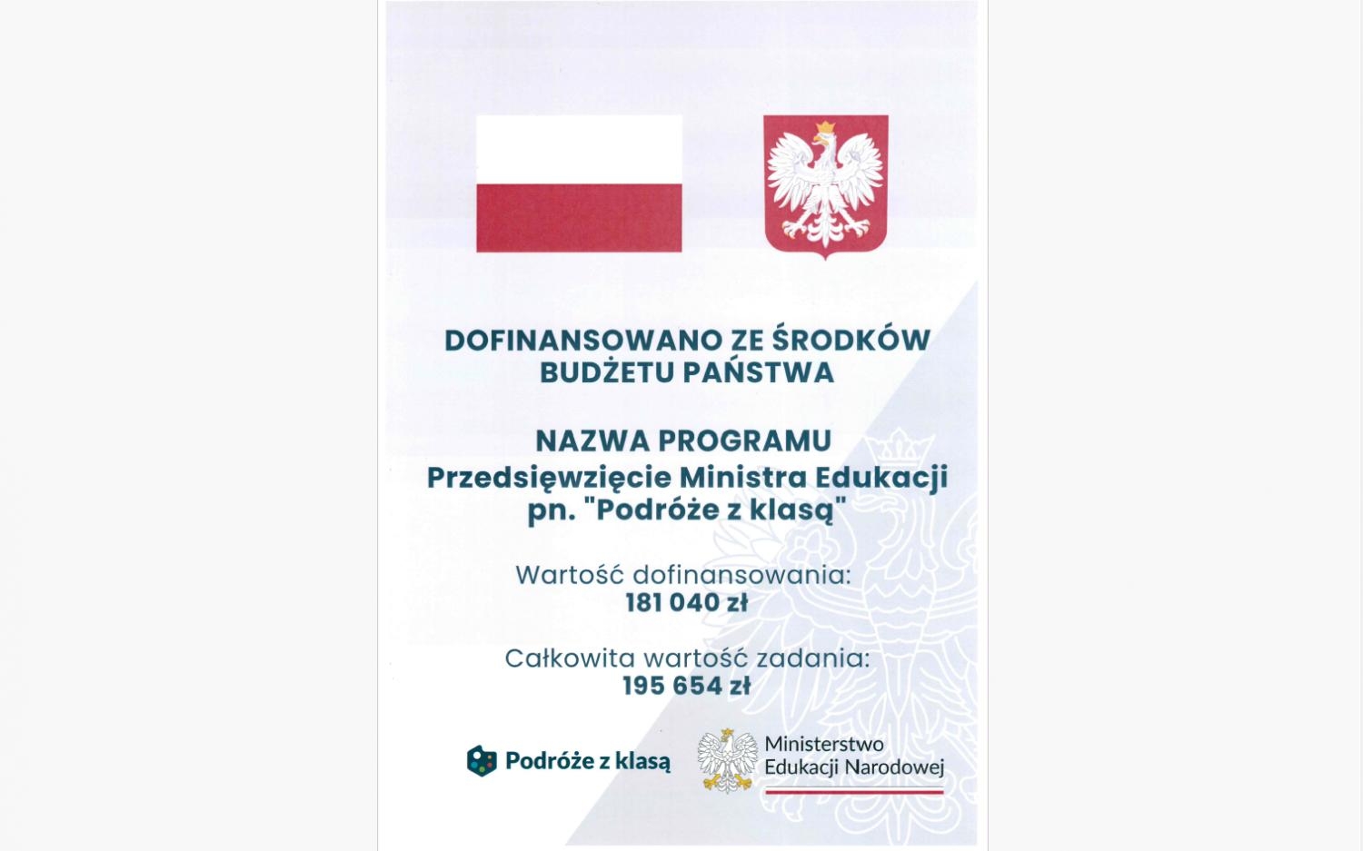 Łączna kwota dotacji z MEN na „Podróże z klasą” dla szkół prowadzonych przez Powiat Cieszyński wynosi 181 040,00 zł.