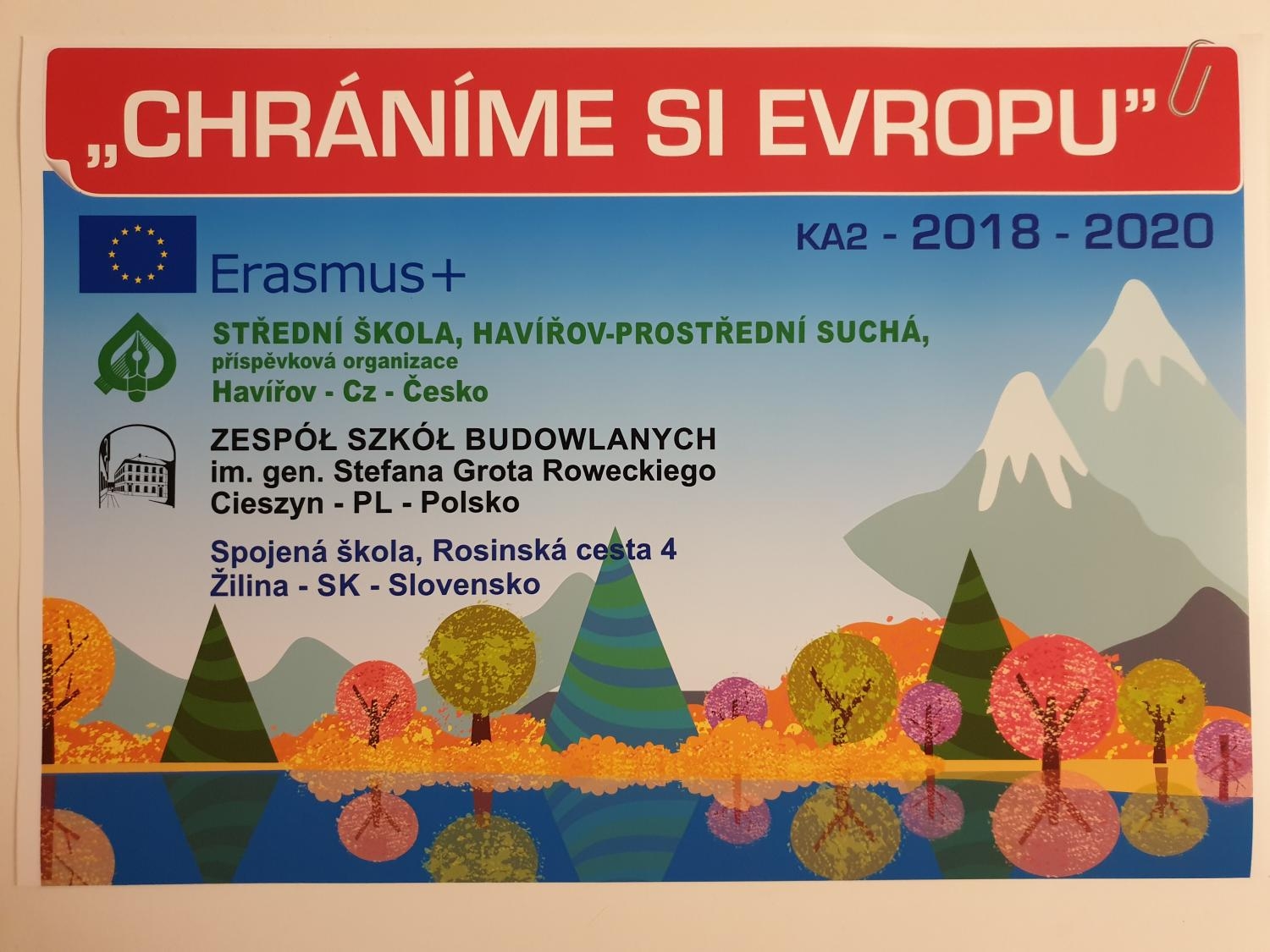 W Zespole Szkół Budowlanych w Cieszynie 30.06.2020 r. kończy się projekt finansowany z programu Erasmus+ Partnerstwa strategiczne – Współpraca szkół (KA229). Projekt realizowano przez 22 miesiące we współpracy ze szkołami partnerskimi w Hawirzowie i Żylinie. „Chranime si Evropu” – pod takim hasłem uczniowie i nauczyciele z Czech, Polski i Słowacji brali udział w wielu różnych działaniach, które koncentrowały się na ochronie bogactwa naturalnego Europy.