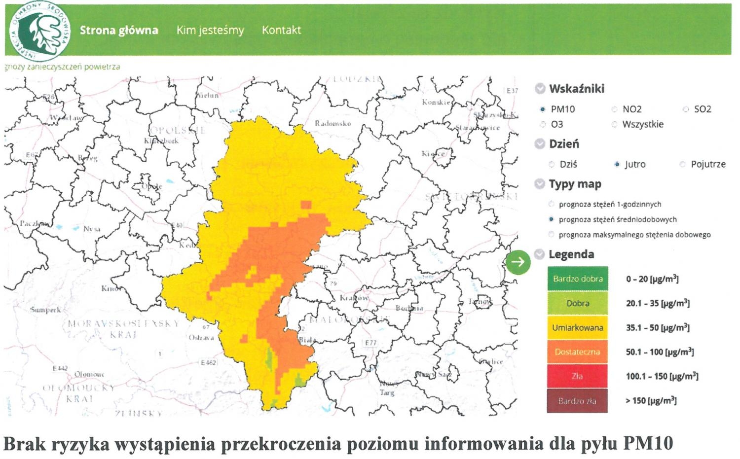 Na terenie powiatu cieszyńskiego prognozuje się na dzień 17 stycznia 2020 r. przekroczenie poziomu informowania dla pyłu PM10.