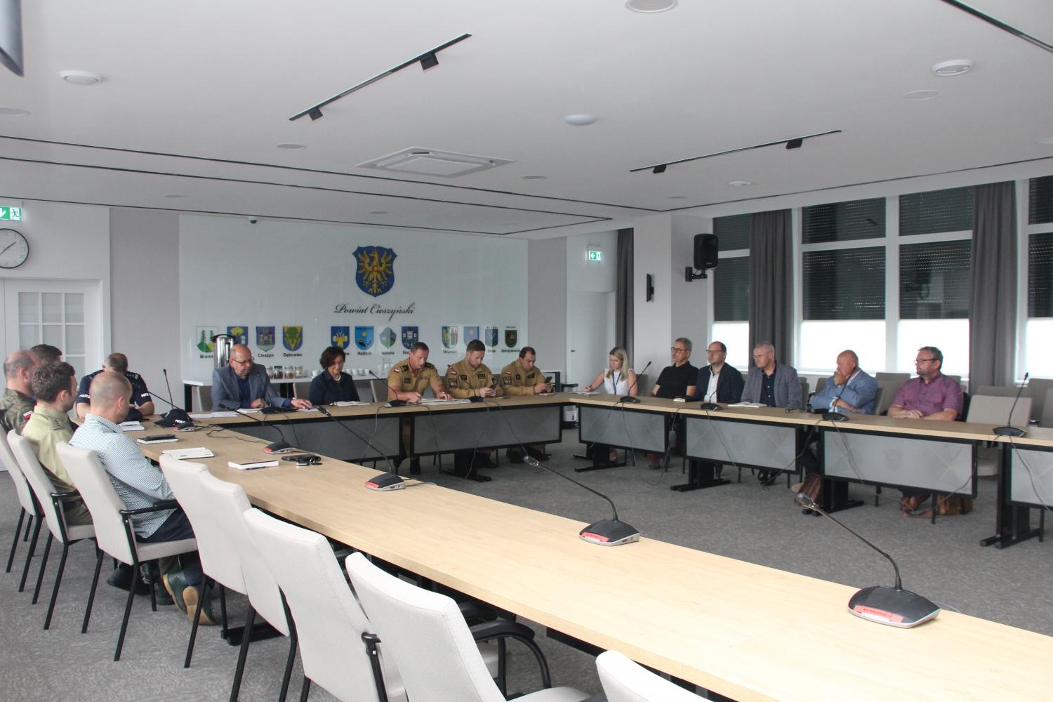 We wtorek, 8 lipca, o godzinie 13 w Starostwie Powiatowym w Cieszynie zebrał się w formule hybrydowej Powiatowy Zespół Zarządzania Kryzysowego z udziałem przedstawicieli gmin. W związku z intensywnymi, ciągłymi opadami deszczu, które od południa występują w regionie, wszystkie służby postawiono w stan gotowości całodobowej. Zabezpieczono dziesiątki tysięcy worków na piasek i setki ton zapasów, a mieszkańcy proszeni są o rozwagę i współpracę.