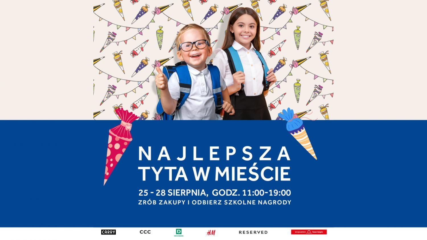 W akcji „Najlepsza tyta w mieście”, która odbędzie się w dniach 25–28 sierpnia w bytomskim centrum handlowym, mogą wziąć udział klienci, którzy zrobią zakupy za min. 150 zł (na maksimum dwóch paragonach) na terenie centrum, a następnie zarejestrują paragon w Punkcie Obsługi Klienta, znajdującym się w pobliżu sklepu Jysk i drogerii Rossmann. Do zdobycia są tyty z przyborami szkolnymi, niezbędnymi dla uczniów w trakcie nauki. Każdego dnia do rozdania jest 50 tyt. W przypadku wyczerpania tyt w danej godzinie, uczestnicy akcji otrzymają nagrodę gwarantowaną w postaci artykułów piśmienniczych. W codziennej puli do rozdania jest aż 80 sztuk!
