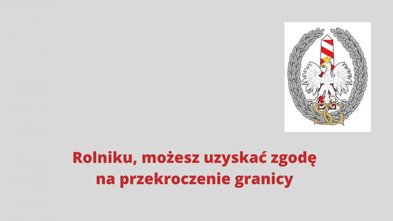 Informuje się, że istnienie możliwość uzyskania zgody na przekroczenie granicy przez osoby posiadające gospodarstwa rolne po obu stronach granicy na podstawie 5 4a Rozporządzenia Ministra Spraw Wewnętrznych i Administracji z dnia 13 marca 2020 r. w sprawie przywrócenia tymczasowo kontroli granicznej osób przekraczających granicę państwową stanowiącą granicę wewnętrzną (Dz. U. poz. 434 z późn. zm.).