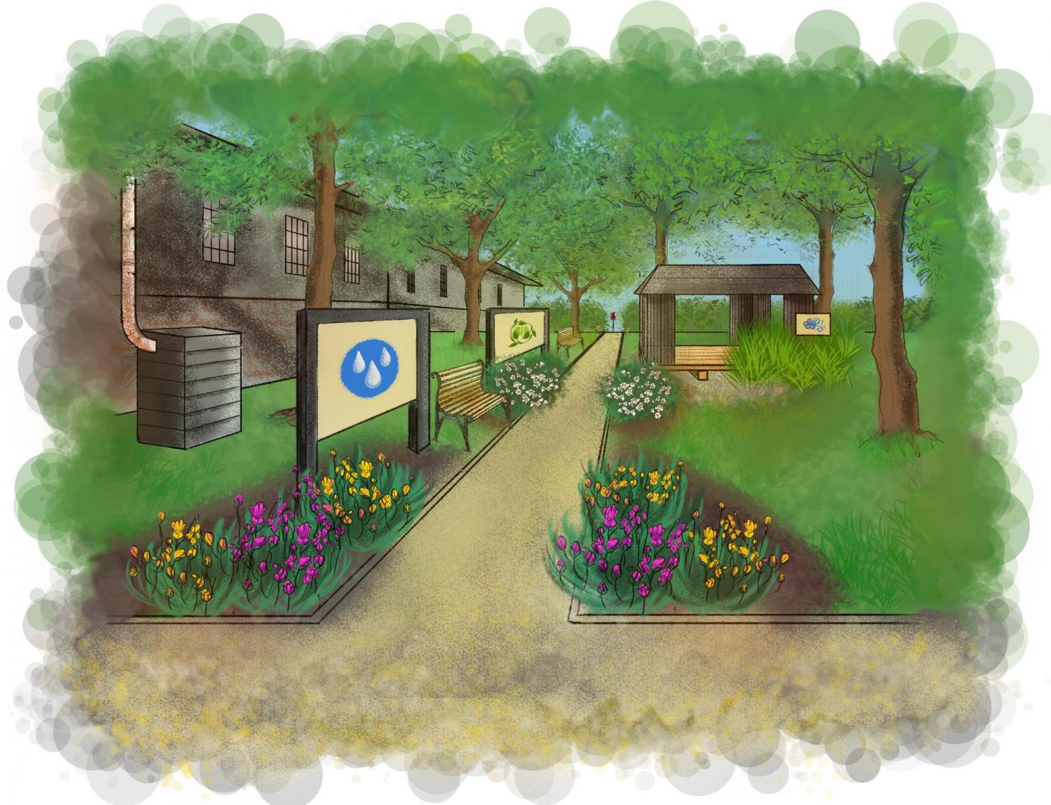 Planowana inwestycja będzie obejmować 4 stanowiska z których każde będzie poświęcone jednej porze roku i innemu, powiązanemu aspektowi zrównoważonego rozwoju, łącząc elementy przyrody z nowoczesnymi technologiami wykorzystującymi odnawialne źródła energii. W proces planowania zaangażowana była cała społeczność szkolna – uczniowie, rodzice i nauczyciele, którzy dzielili się swoimi pomysłami w ramach akcji „Stwórzmy razem zieloną przestrzeń do nauki”.