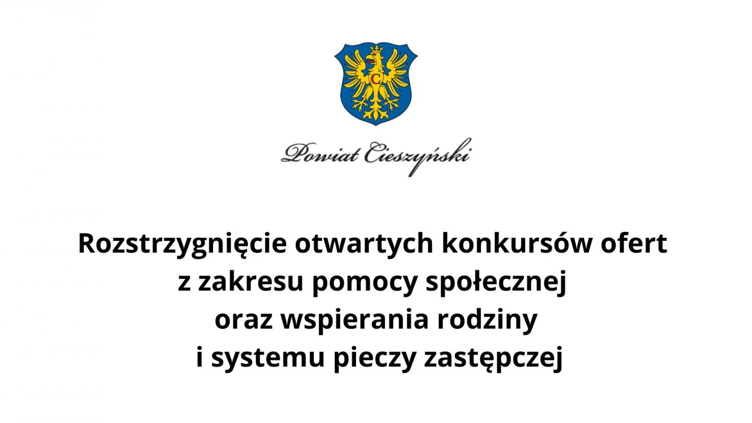Uchwałą Zarządu Powiatu Cieszyńskiego nr 1396/ZP/VI/23 z dnia 13 kwietnia 2023 r. rozstrzygnięty został otwarty konkurs ofert na realizację zadań publicznych z zakresu pomocy społecznej oraz wspierania rodziny i systemu pieczy zastępczej w roku 2023.