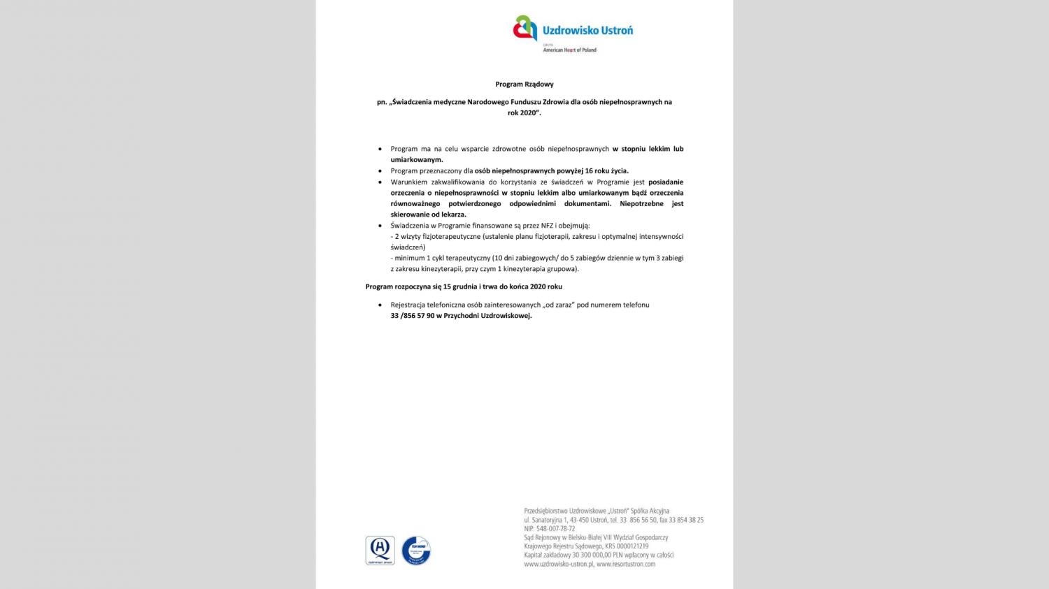 Rusza Program Rządowy „Świadczenia medyczne Narodowego Funduszu Zdrowia dla osób niepełnosprawnych na 2020 r.