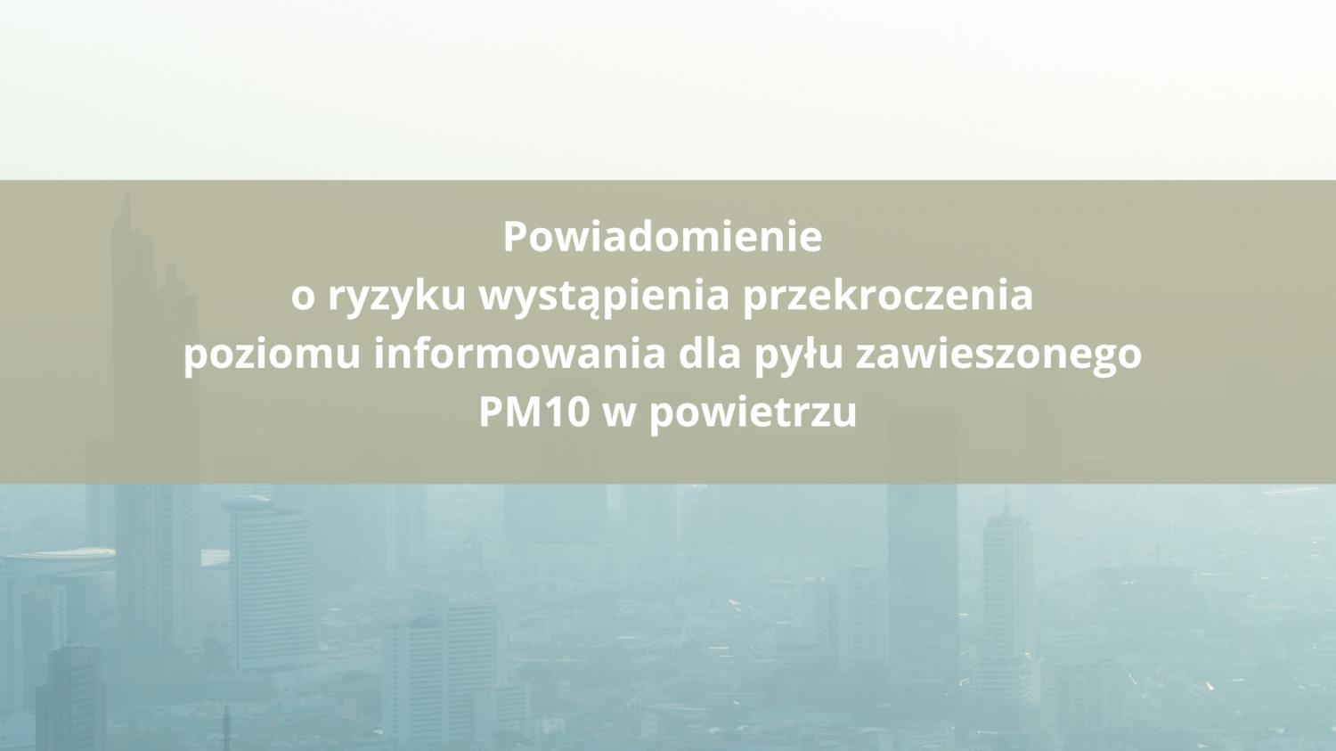 Regionalny Wydział Monitoringu Środowiska w Katowicach informuje o ryzyku wystąpienia przekroczenia poziomu informowania dla pyłu zawieszonego PM10 w powietrzu.