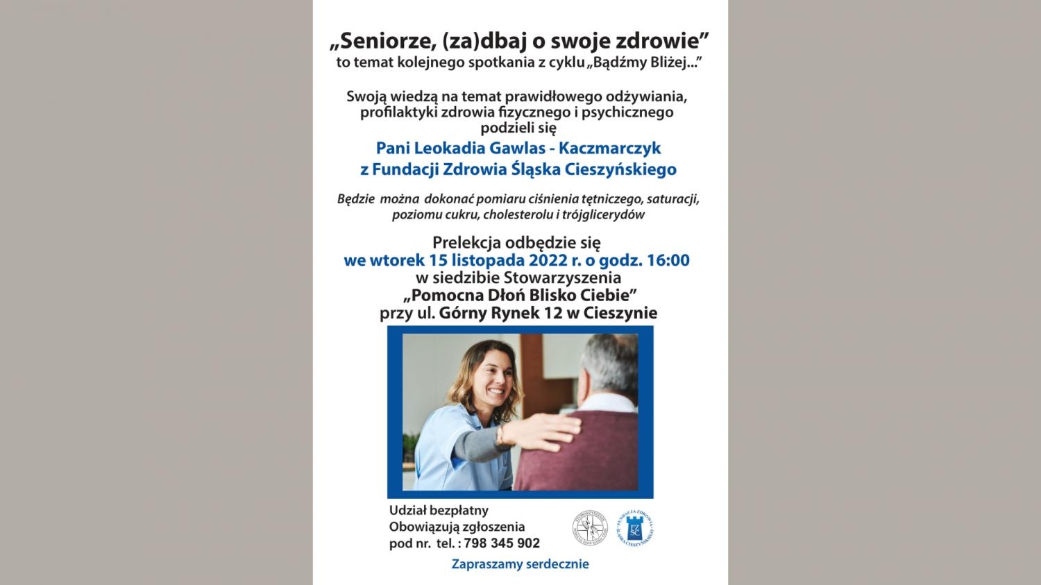 „Seniorze, (za)dbaj o swoje zdrowie” to temat kolejnego spotkania z cyklu „Bądźmy Bliżej...”