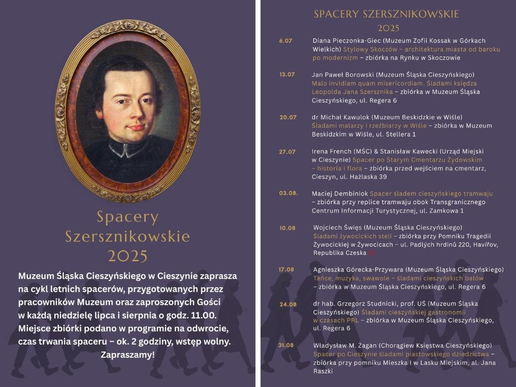 Pracownicy Muzeum Śląska Cieszyńskiego, Muzeum Zofii Kossak-Szatkowskiej, Muzeum Beskidzkie im. Andrzeja Podżorskiego w Wiśle oraz zaproszeni Goście tradycyjnie już przygotowali na wakacyjne miesiące propozycje Spacerów Szersznikowskich, które odbywać się będą w KAŻDĄ NIEDZIELĘ LIPCA I SIERPNIA O GODZINIE 11.00.