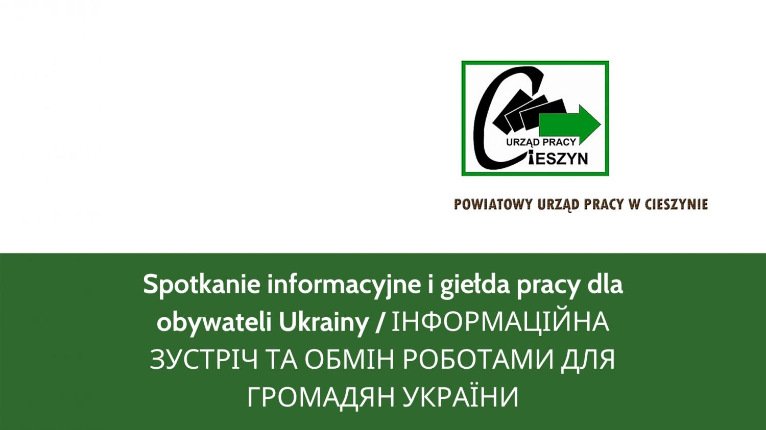 Urząd Miejski w Cieszynie i Powiatowy Urząd Pracy w Cieszynie zapraszają obywateli Ukrainy we wtorek 10 maja w godzinach 10:00-13:00 do Cieszyńskiego Ośrodka Kultury Dom Narodowy (Rynek 12) na spotkanie informacyjne połączone z giełdę pracy.