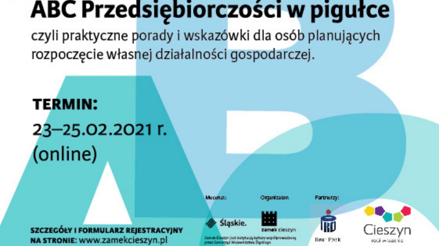 Zamek Cieszyn planuje w dniach 23-25.02.2021 r. kolejną odsłonę szkolenia „ABC Przedsiębiorczości w pigułce”, skierowanego do osób zainteresowanych otwarciem własnej działalności gospodarczej.