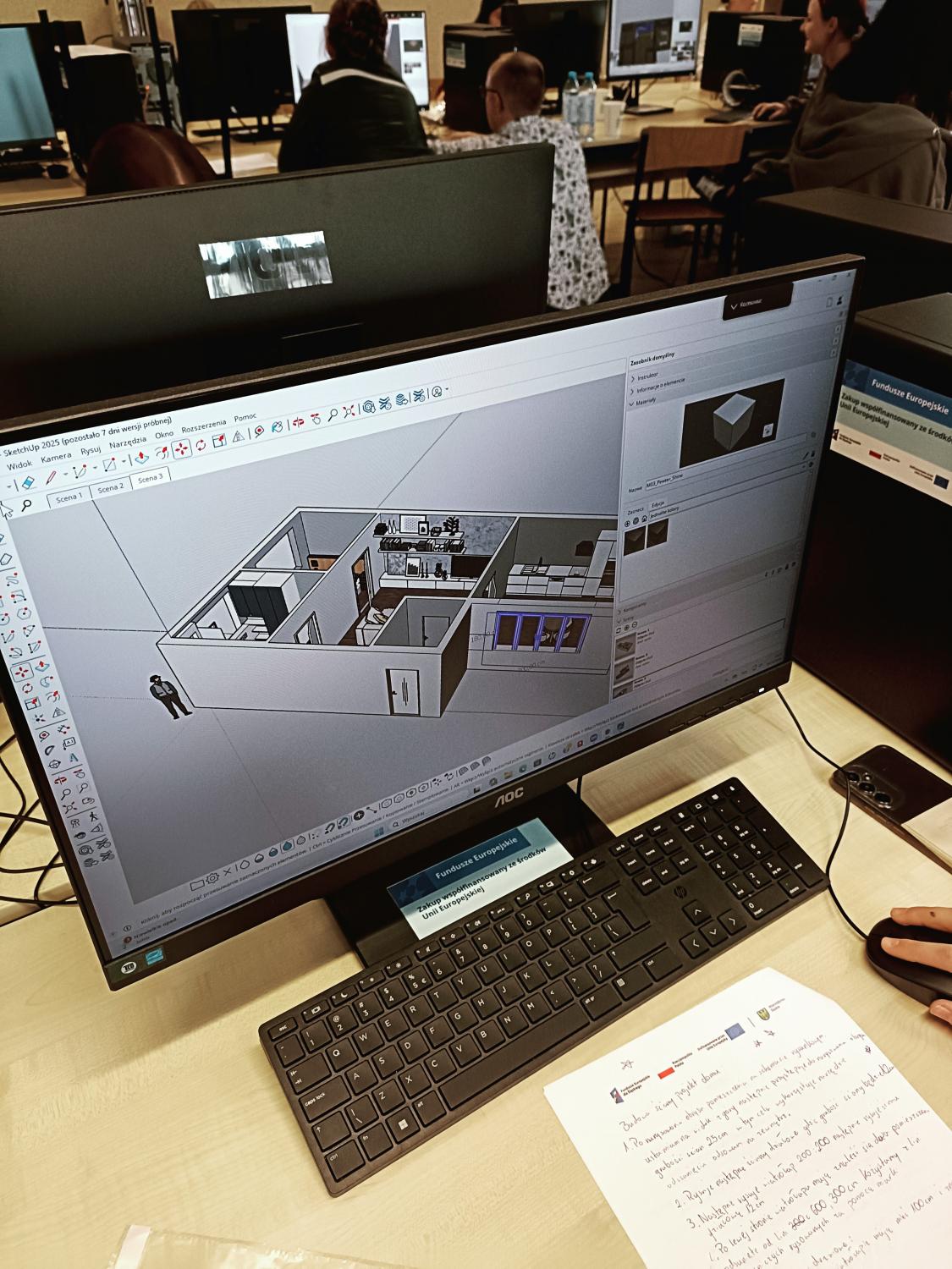 Podczas zajęć poznali zasady projektowania i wizualizacji wnętrz oraz modelowania 3D. Szkolenie miało charakter praktyczny — uczniowie tworzyli własne projekty, rozwijając umiejętności przydatne w przyszłej pracy zawodowej.