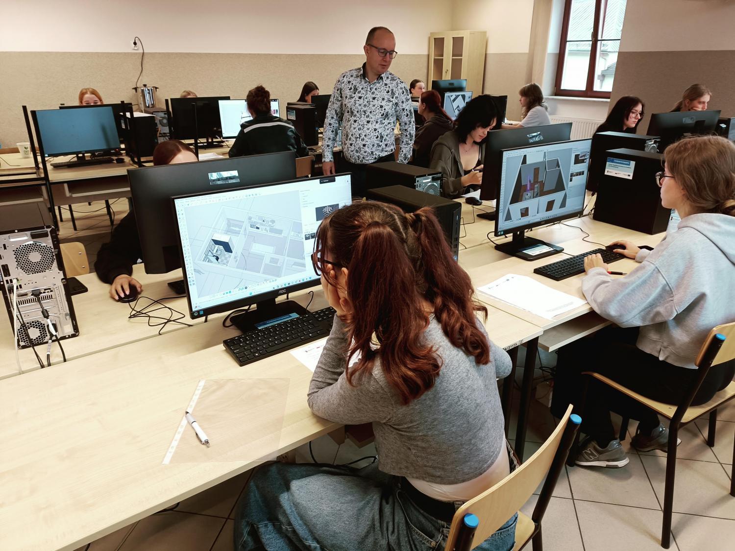 Dzięki uczestnictwu w zajęciach przyszli technicy poszerzyli swoją wiedzę z zakresu nowoczesnych narzędzi projektowych wykorzystywanych w branży budowlanej i aranżacyjnej.