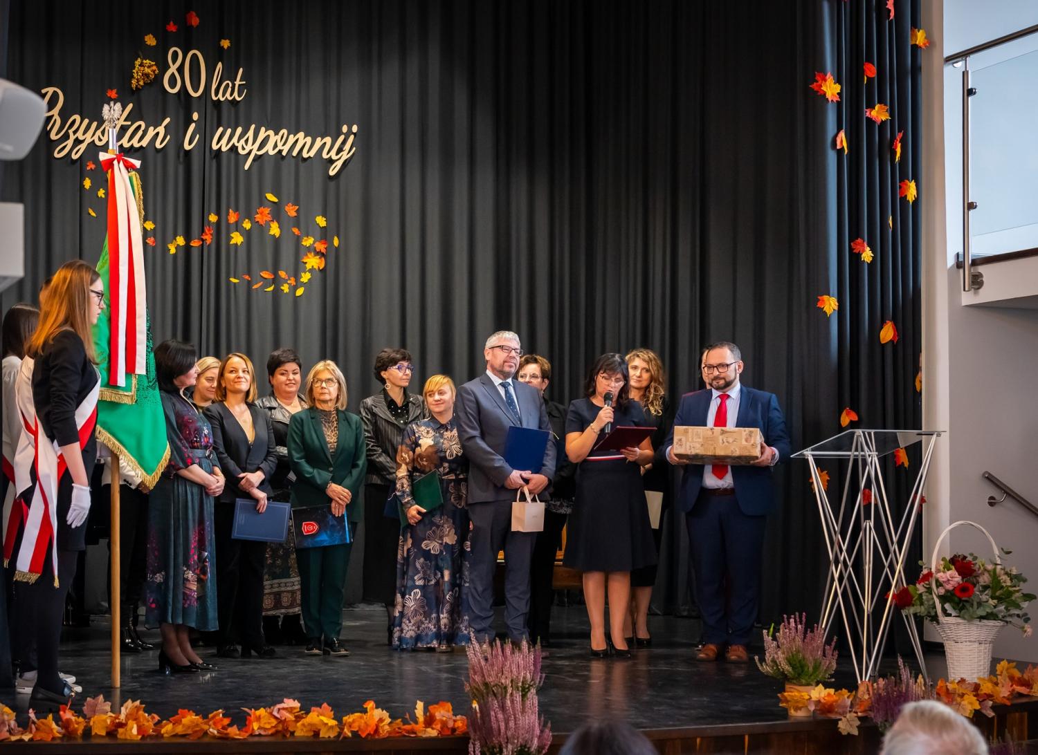 Dyrektor Krystyna Cieślar-Jarząbek, w pięknych słowach, pełnych historii, refleksji, ale i planów na przyszłość przedstawiła szkołę, czyli dostojną Jubilatkę. Po wystąpieniu dyrektor szkoły przyszedł czas na gratulacje od zaproszonych gości.