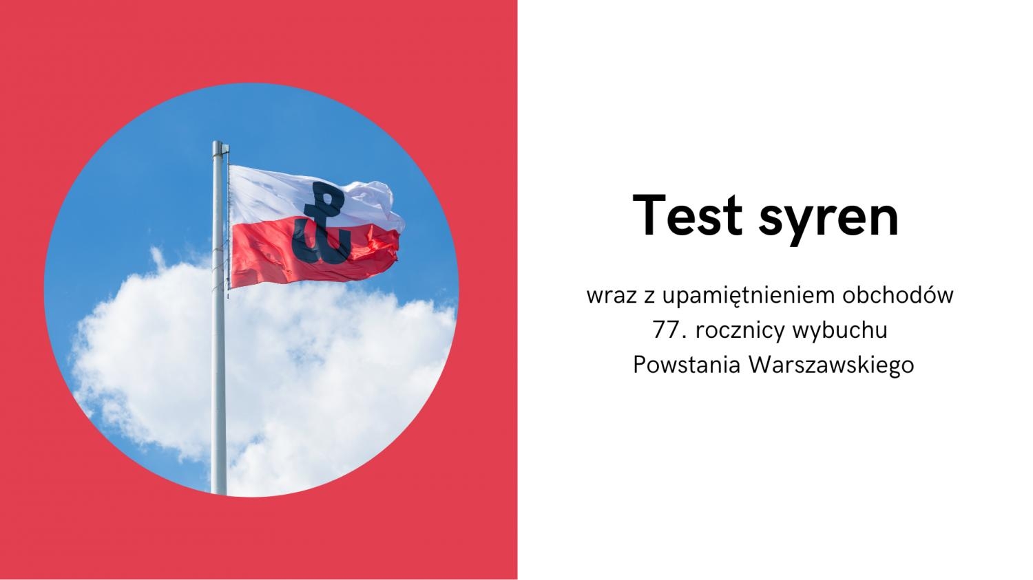 Test syren wraz z upamiętnieniem obchodów 77. rocznicy wybuchu Powstania Warszawskiego