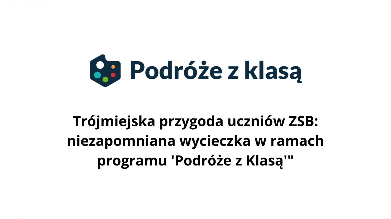 Na obrazie znajduje się logo programu "Podróże z klasą", a poniżej widnieje tekst: "Trójmiejska przygoda uczniów ZSB: niezapomniana wycieczka w ramach programu