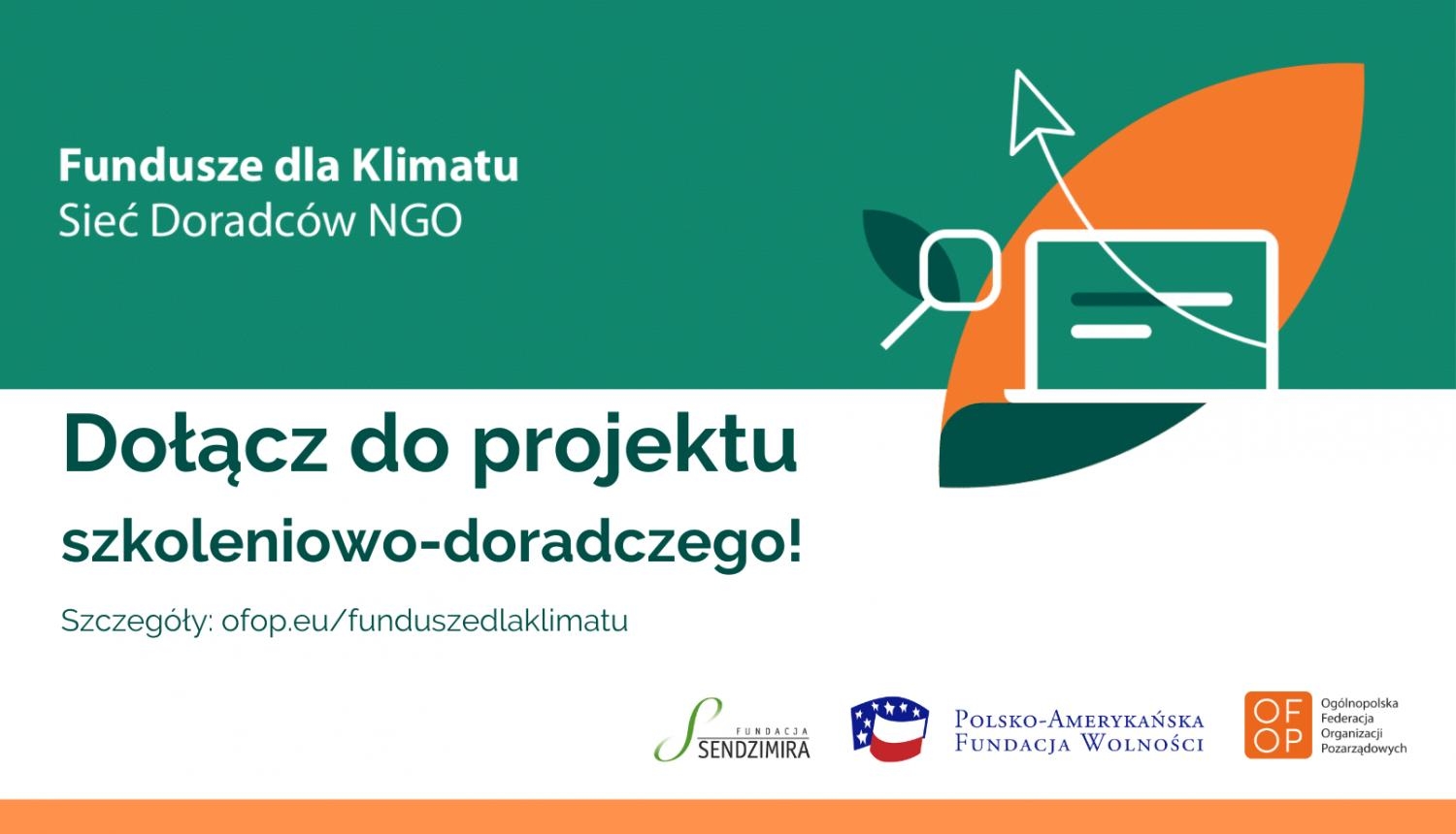 Fundusze dla klimatu – Sieć Doradców NGO to projekt szkoleniowo-doradczy realizowany przez Ogólnopolską Federację Organizacji Pozarządowych (OFOP) przy współpracy Fundacji Sendzimira w ramach programu „Zielony Lider" ze środków Polsko-Amerykańskiej Fundacji Wolności.