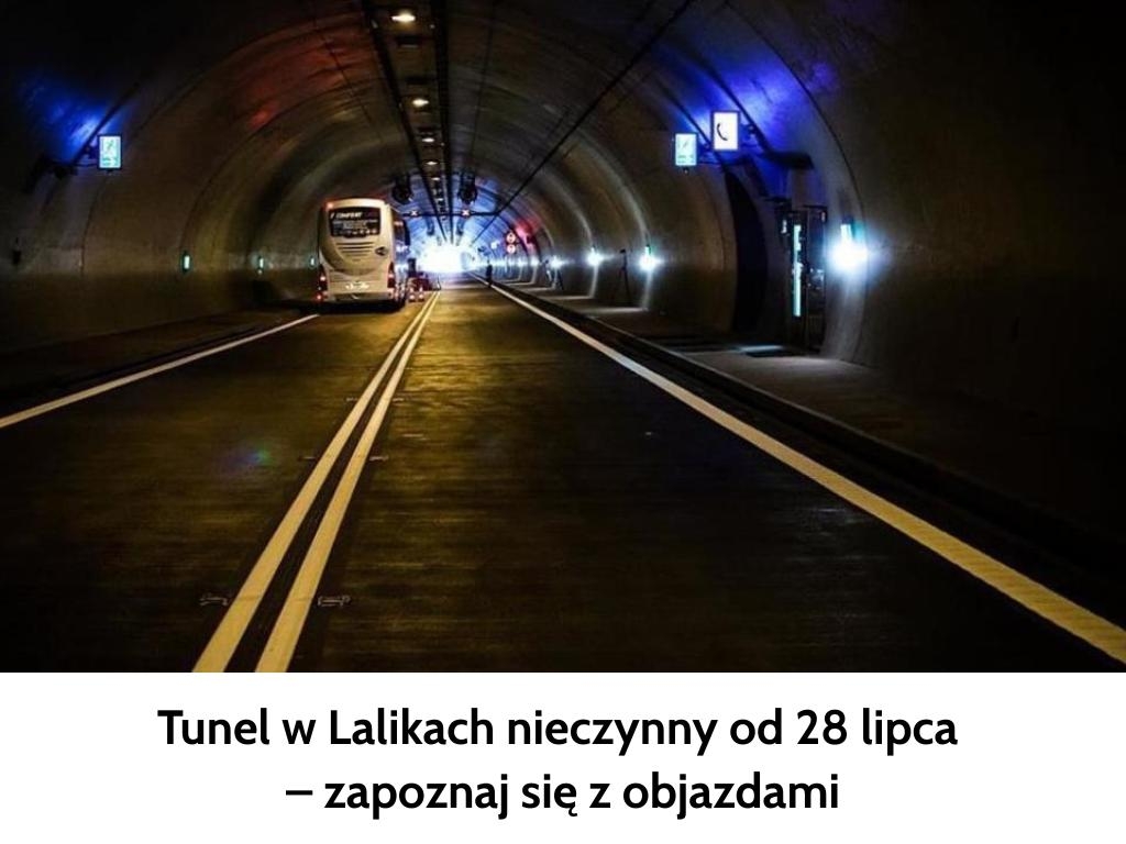 Generalna Dyrekcja Dróg Krajowych i Autostrad przekazała informację o planowanym zamknięciu tunelu w Lalikach. Zmiana organizacji ruchu nastąpi już 28 lipca 2025 roku o godzinie 6:00 i potrwa do 25 sierpnia 2025 roku do godziny 6:00.