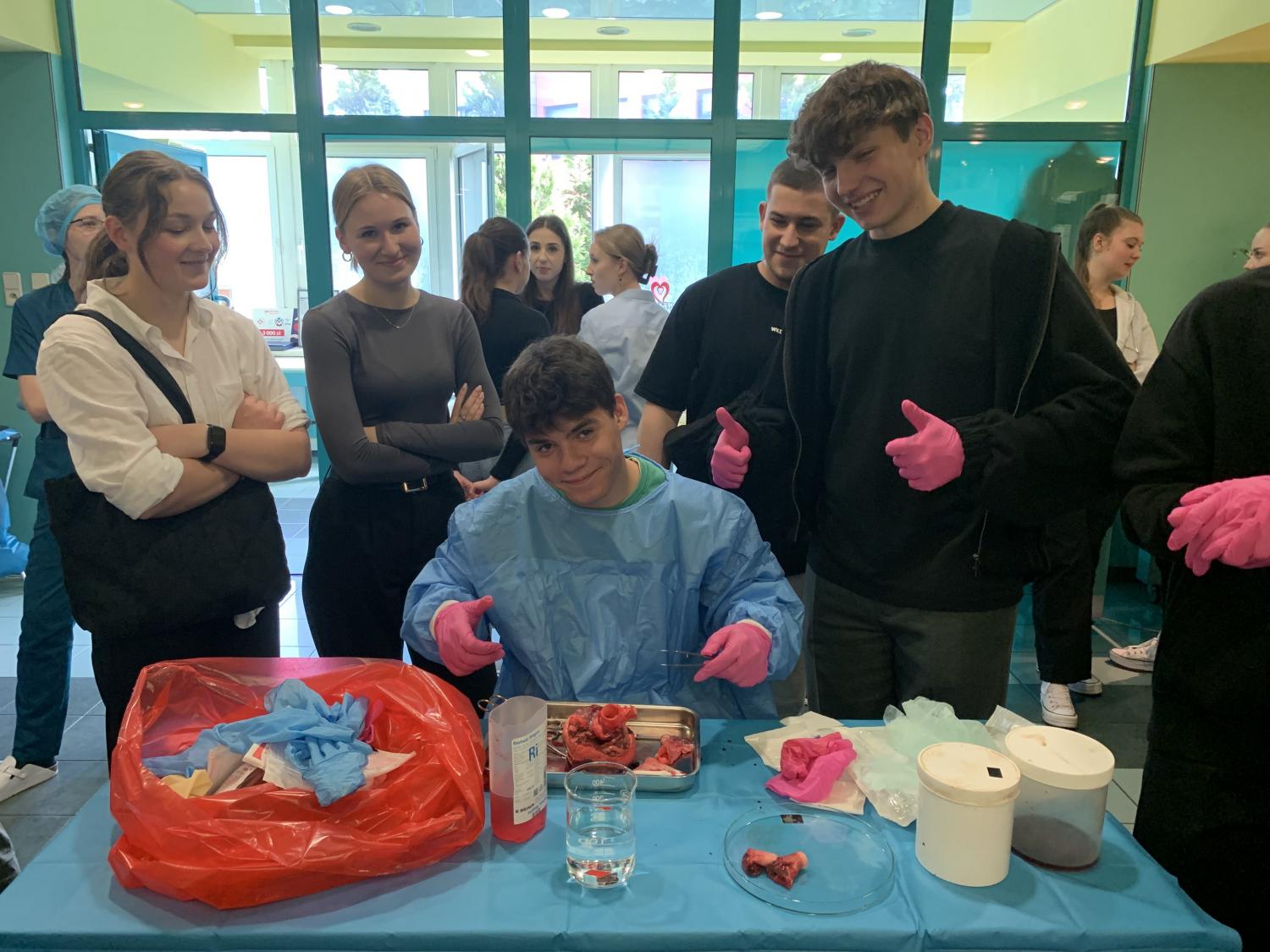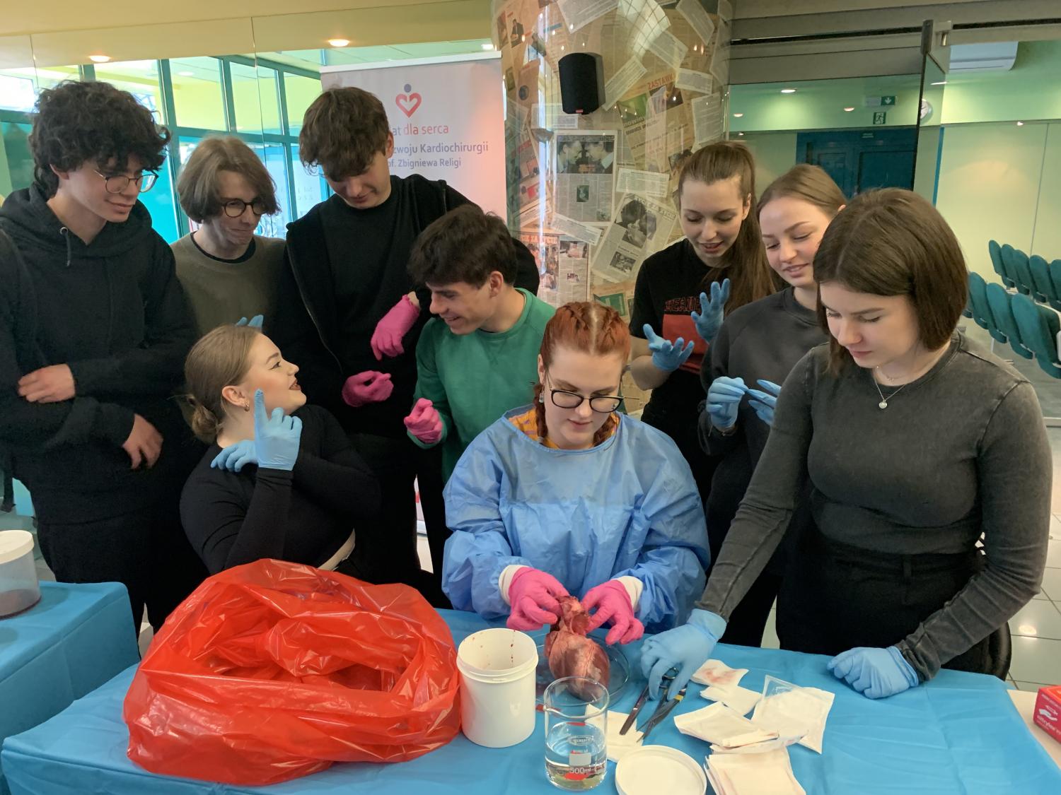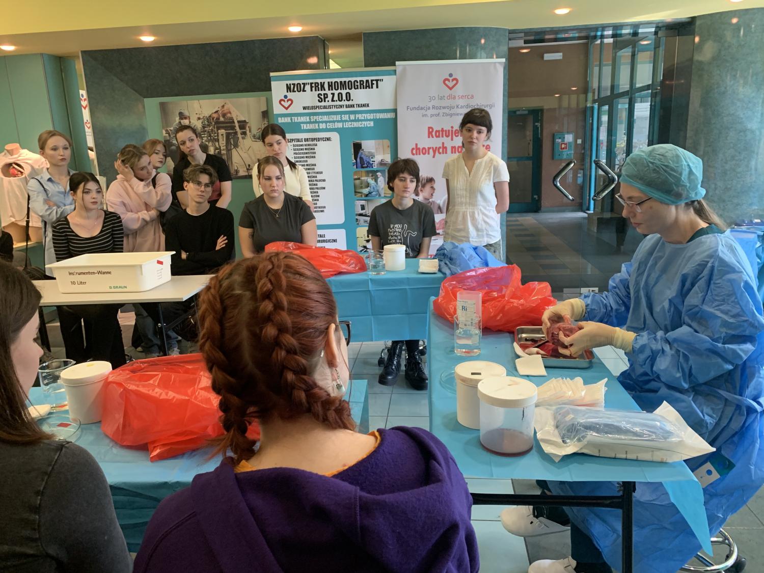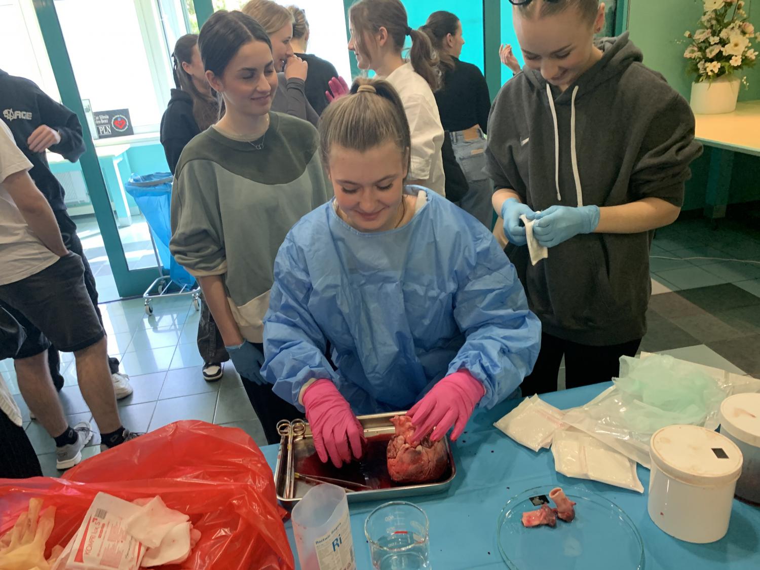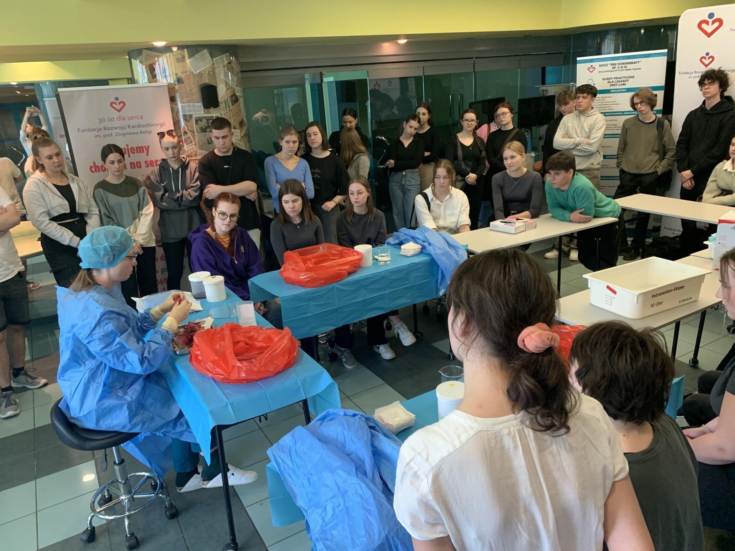 Tuż przed zakończeniem nauki w szkole nasi tegoroczni maturzyści z klas o profilu medycznym wzięli udział w warsztatach i wykładach w Fundacji Rozwoju Kardiochirurgii w Zabrzu, gdzie wysłuchali wykładu dr hab. n. med. prof. IPS Piotra Wilczka o nowoczesnych technologiach w medycynie. Następnie uczniowie uczestniczyli w pokazowej sekcji serca świni, którą przeprowadziła dr Aneta Samotus, a także samodzielnie preparowali zastawki serca. Nauczyciel biologii – Pani Sylwia Mikler po raz kolejny dziękuje Fundacji za poświęcony czas i kolejną możliwość wizyty w tak niezwykłym miejscu.