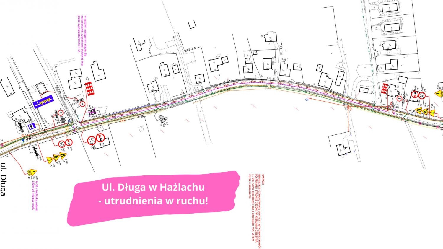 W związku rozpoczęciem realizacji inwestycji pn.: „Rozbudowa drogi powiatowej 2621S - ul. Długiej w Hażlachu na odcinku od lasu Brzezie w kierunku centrum Hażlacha (do istniejącego chodnika)", Wykonawca robót – firma TETLA SZYMON „DROGRÓD” informuje mieszkańców oraz użytkowników ul. Długiej, że dla zapewnienia bezpieczeństwa ruchu drogowego oraz ze względu na technologię robót, na czas wykonywania robót związanych z rozbudową ul. Długiej w Hażlachu od dnia 11 sierpnia 2020r. planowane jest wdrożenie tymczasowej organizacji ruchu polegającej na zawężeniu jezdni do jednego pasa ruchu oraz wprowadzenie ruchu wahadłowego sterowanego sygnalizacją świetlną na odcinku realizowanych robót (zgodnie z zatwierdzoną organizacją ruchu).