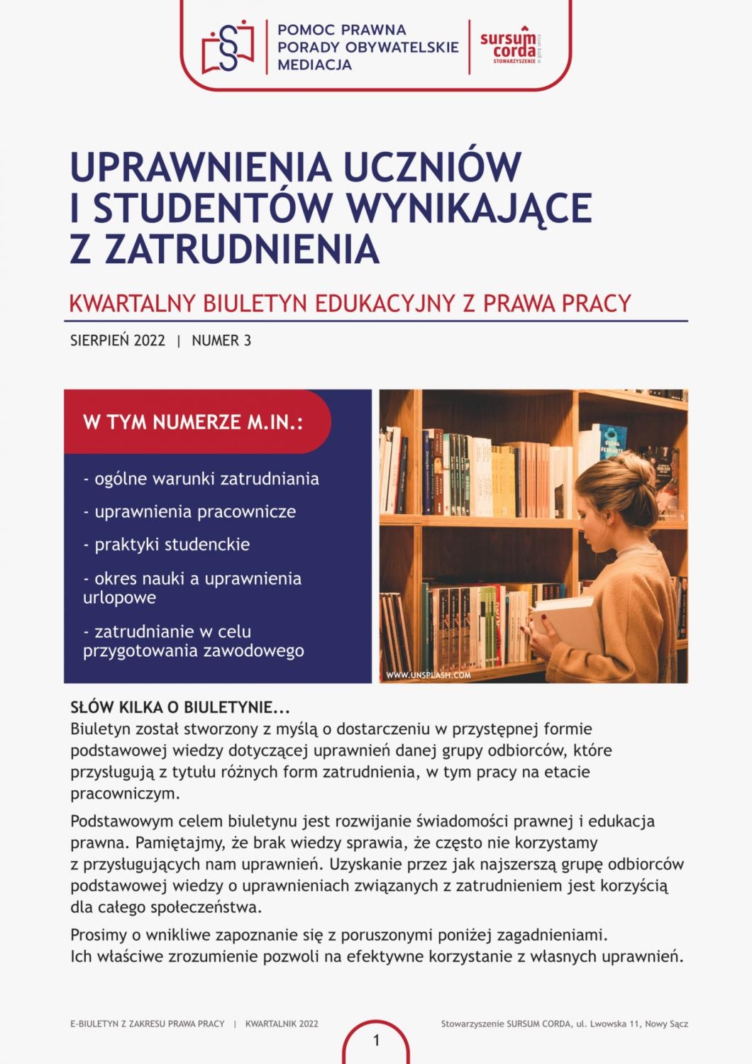 UPRAWNIENIA UCZNIÓW I STUDENTÓW WYNIKAJĄCE Z ZATRUDNIENIA. E-biuletyn