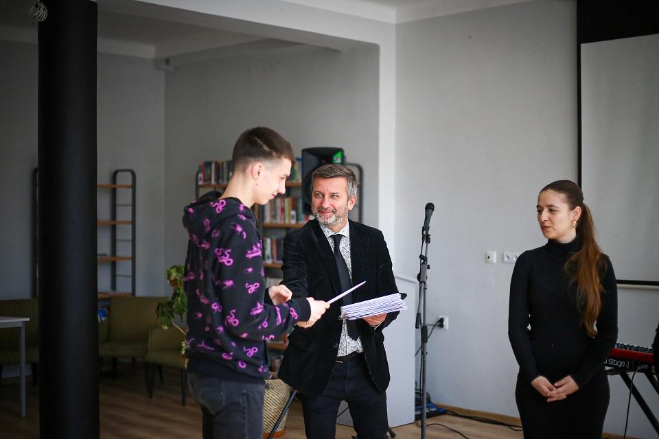 W uroczystości wzięli udział przedstawiciele Starostwa Powiatowego w Cieszynie – Pani Wicestarosta Janina Żagan oraz Pan Naczelnik Wydziału Edukacji Michał Rajwa. Po muzycznym wstępie w wykonaniu trojga uczennic z wiślańskiego Technikum oraz wzruszającego występu podopiecznej z Ukrainy przywitała wszystkich Pani Dyrektor Kornelia Zubek i przedstawiła ideę organizacji kształcenia młodzieży ukraińskiej w naszej placówce. Dzięki wieloletniej współpracy Zespołu Szkół z Wisły z Fundacją Hotelarską z Genewy udało się pozyskać środki, które zostaną przeznaczone m. in. na zakup materiałów dydaktycznych dla słuchaczy oraz zaplanowanie dla nich dwóch wyjazdów integracyjnych.