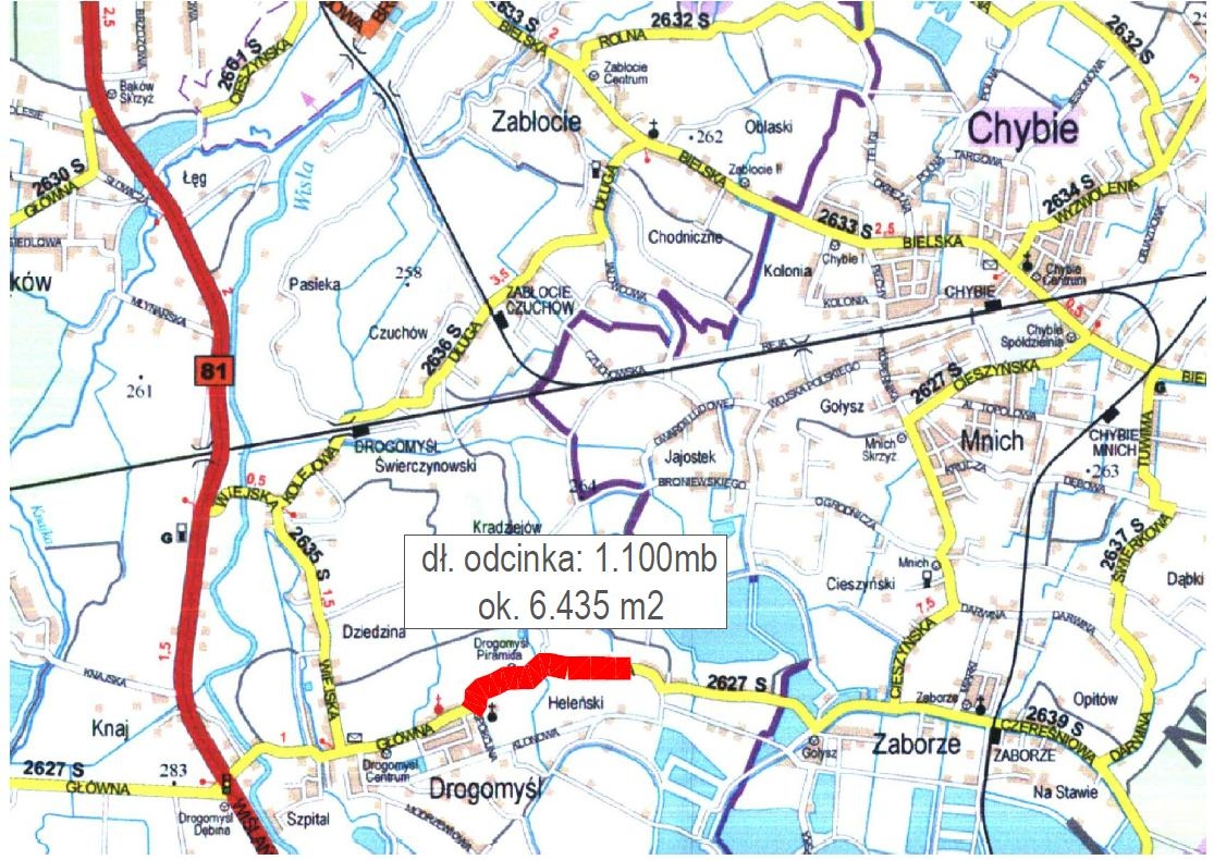 W dniach 13-14.10.2025 r. planowana jest realizacja kompleksowego remontu nawierzchni bitumicznej (nakładka bitumiczna) w ciągu DP 2627 S przy ul. Głównej w Drogomyślu na odcinku ok. 1.100 mb (plan sytuacyjny w załączeniu).