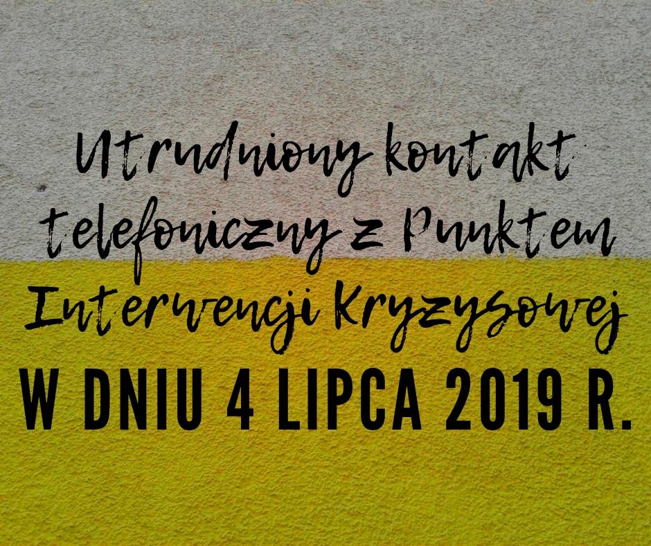 Utrudniony kontakt telefoniczny z Punktem Interwencji Kryzysowej w dniu 4 lipca 2019 r.