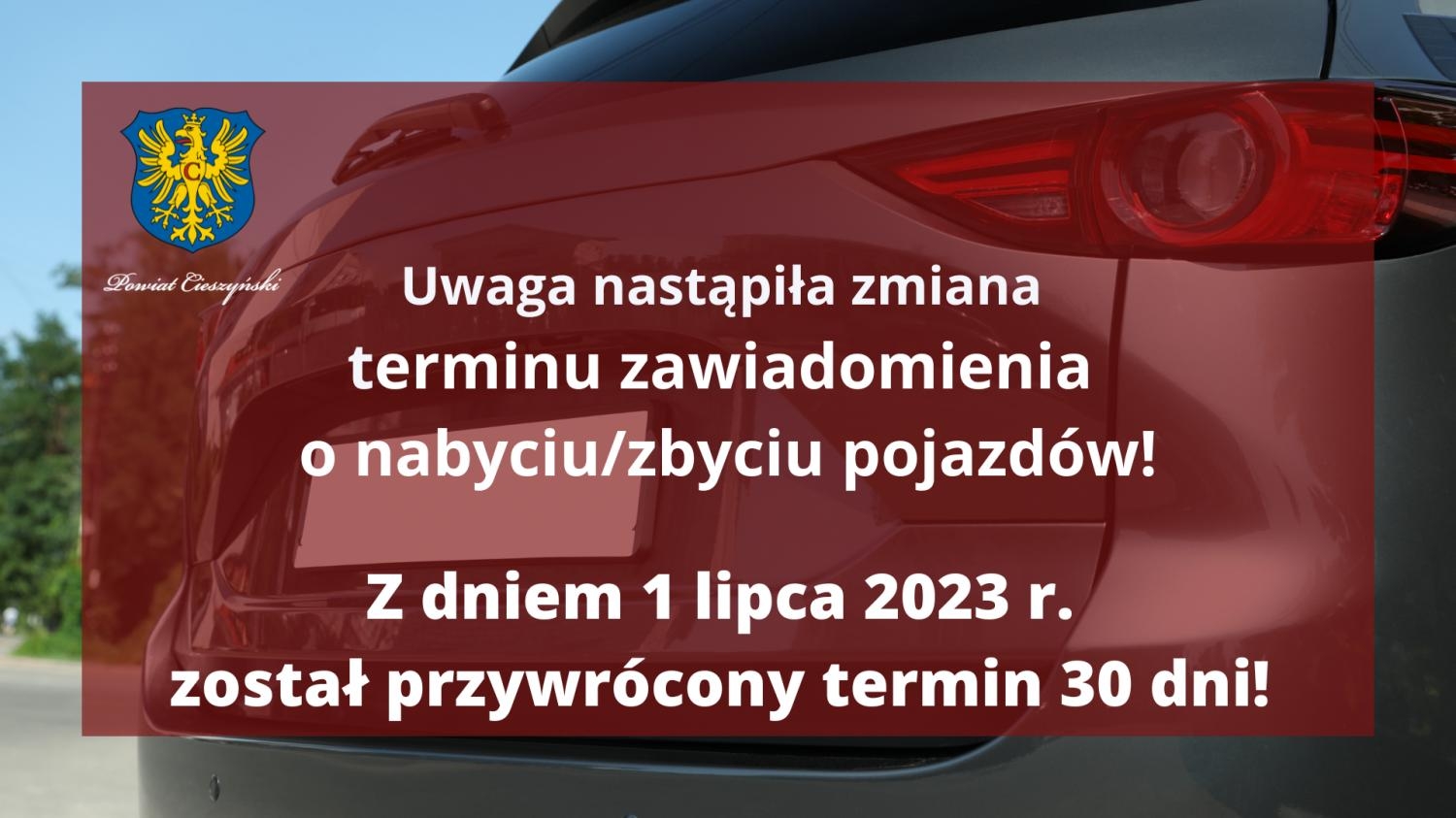 Uwaga nastąpiła zmiana terminu zawiadomienia o nabyciu/zbyciu pojazdów!