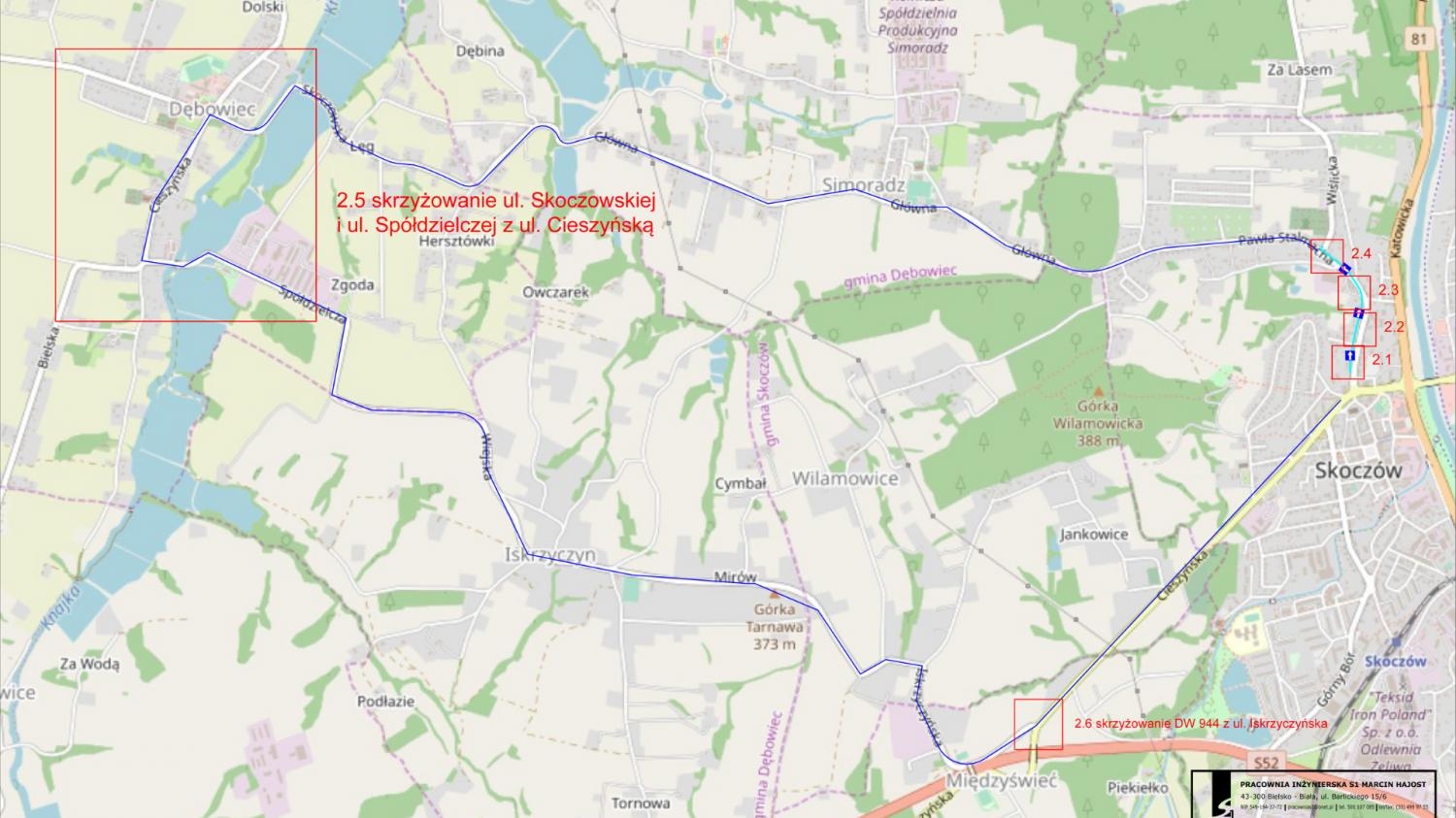 - drogą powiatową 2619 S (ul. Cieszyńska w Dębowcu),