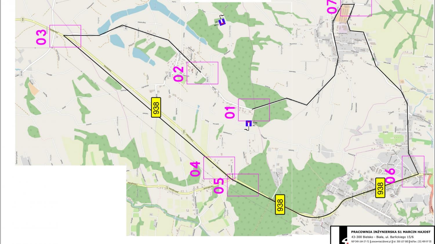 - drogą wojewódzką nr 938: ul. Katowicką w Cieszynie oraz ulicą Cieszyńską w Hażlachu,