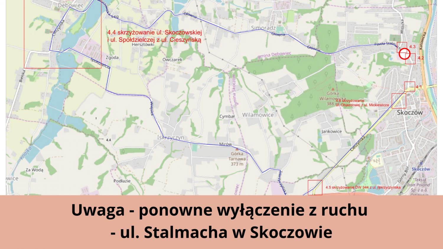 Uwaga - ul. Stalmacha w Skoczowie – PONOWNE WYŁĄCZENIE Z RUCHU!