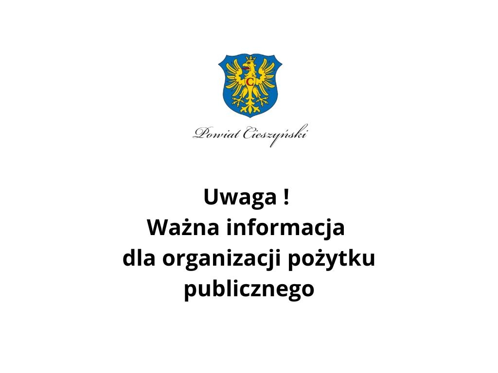 Uwaga ! Ważna informacja dla organizacji pożytku publicznego