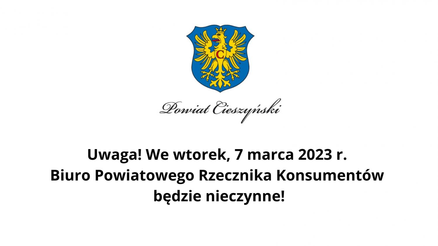Uwaga! We wtorek, 7 marca 2023 r. Biuro Powiatowego Rzecznika Konsumentów będzie nieczynne!