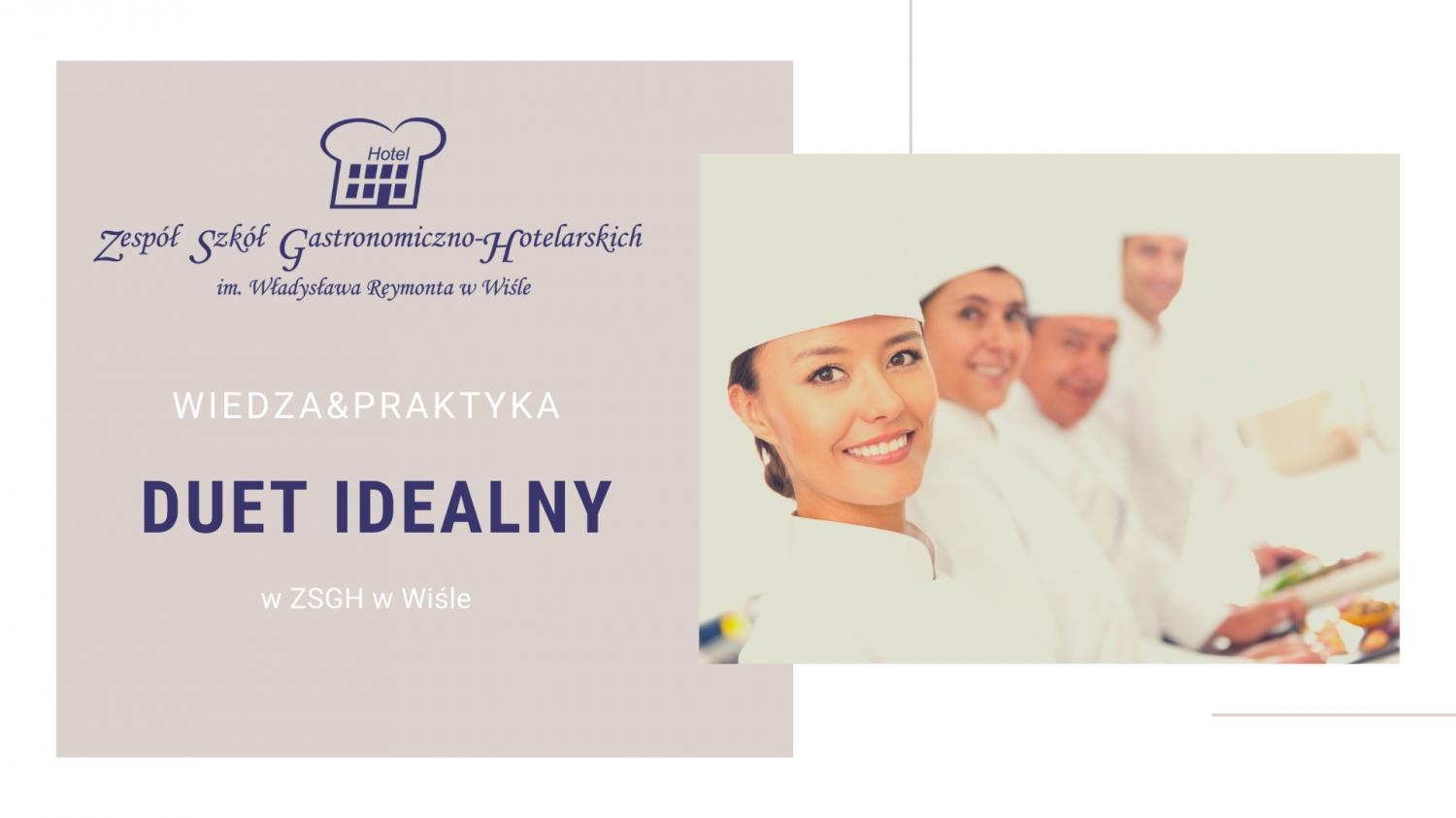 Przyszli technicy żywienia i usług gastronomicznych w ramach praktycznej nauki zawodu raz w tygodniu szlifują fach nie tylko w szkolnej stołówce, ale także w wyjątkowych restauracjach w regionie. Dyrektor ZSGH p.Kornelia Zubek podpisała umowę z Dworem Skibówki w Ustroniu-Równicy, Hotelem Wisła Premium, wiślańską Karczmą Regionalną " U Karola" oraz Kompleksem Złoty Groń Resort & SPA w Istebnej. Ta innowacyjna forma zajęć obejmuje uczniów już od 2.klasy, co gwarantuje, iż przyszli absolwenci od razu po zakończeniu nauki będą niezwykle cenni na rynku