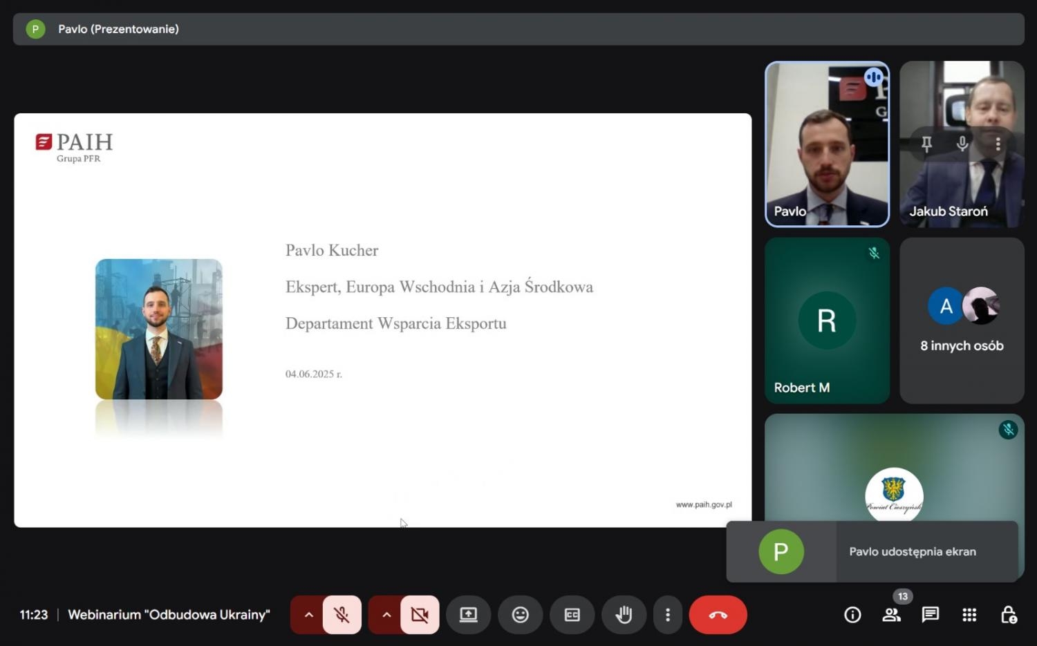 Temat dotyczący projektu odbudowy Ukrainy przedstawił Pavlo Kucher – ekspert z Departamentu Wsparcia Eksportu, Polskiej Agencji Inwestycji i Handlu.