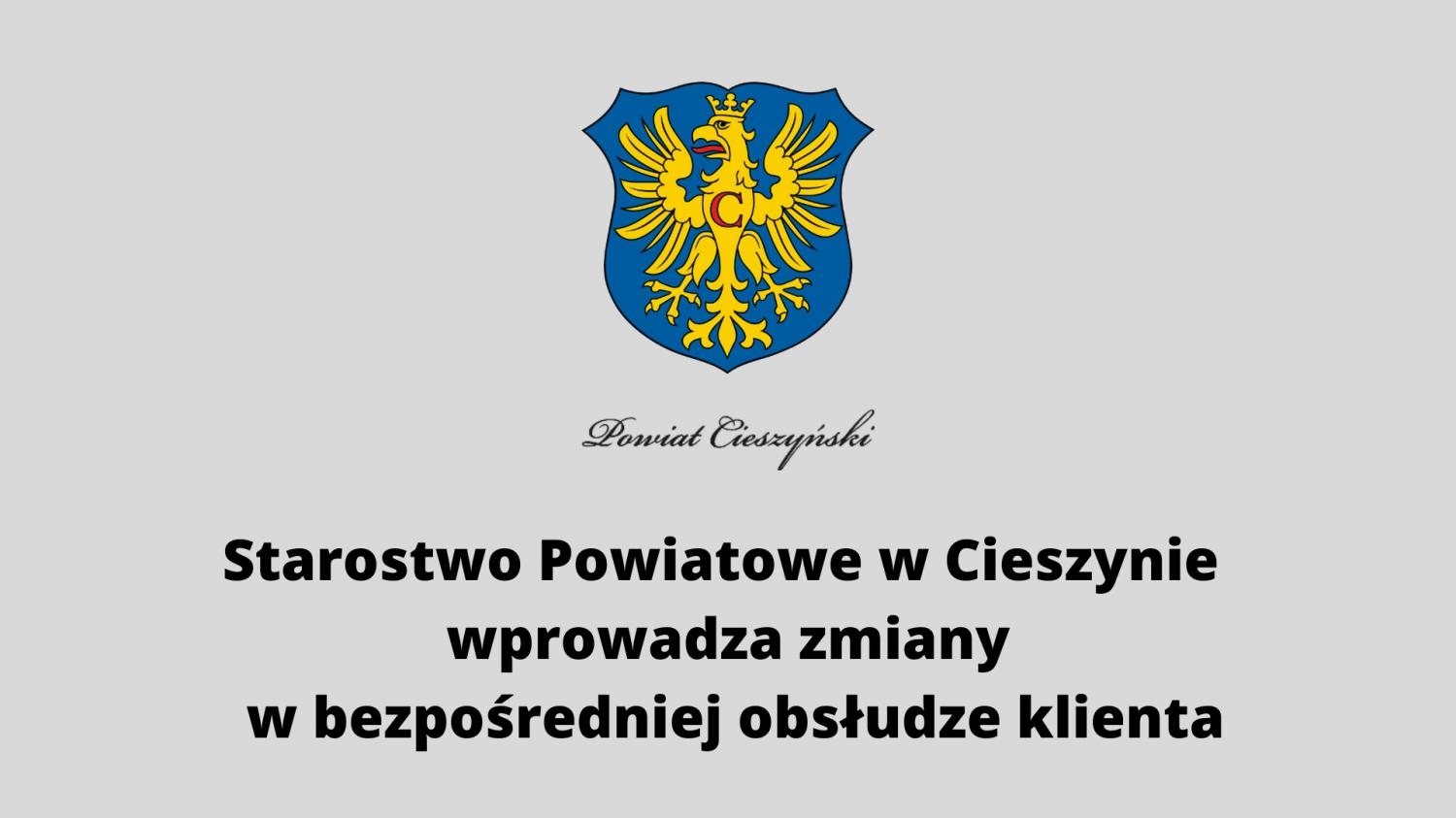 W związku z wprowadzonymi na terenie Polski kolejnymi obostrzeniami związanymi z pandemią koronawirusa COVID-19, a także wejściem Powiatu Cieszyńskiego do strefy czerwonej – Starostwo Powiatowe w Cieszynie od poniedziałku, 19 października 2020 r. wprowadza nowe zasady w zakresie bezpośredniej obsługi klientów, informuje Mieczysław Szczurek, Starosta Cieszyński.
