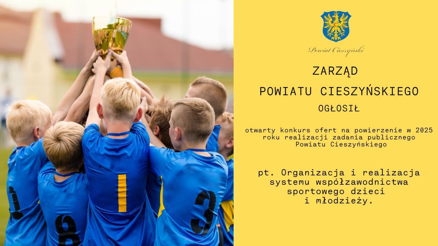 Zarząd Powiatu Cieszyńskiego 12 grudnia 2024 roku ogłosił otwarty konkurs ofert na powierzenie w 2025 roku realizacji zadania publicznego Powiatu Cieszyńskiego pt. „Organizacja i realizacja systemu współzawodnictwa sportowego dzieci i młodzieży”.