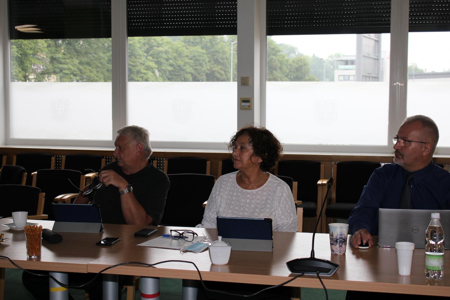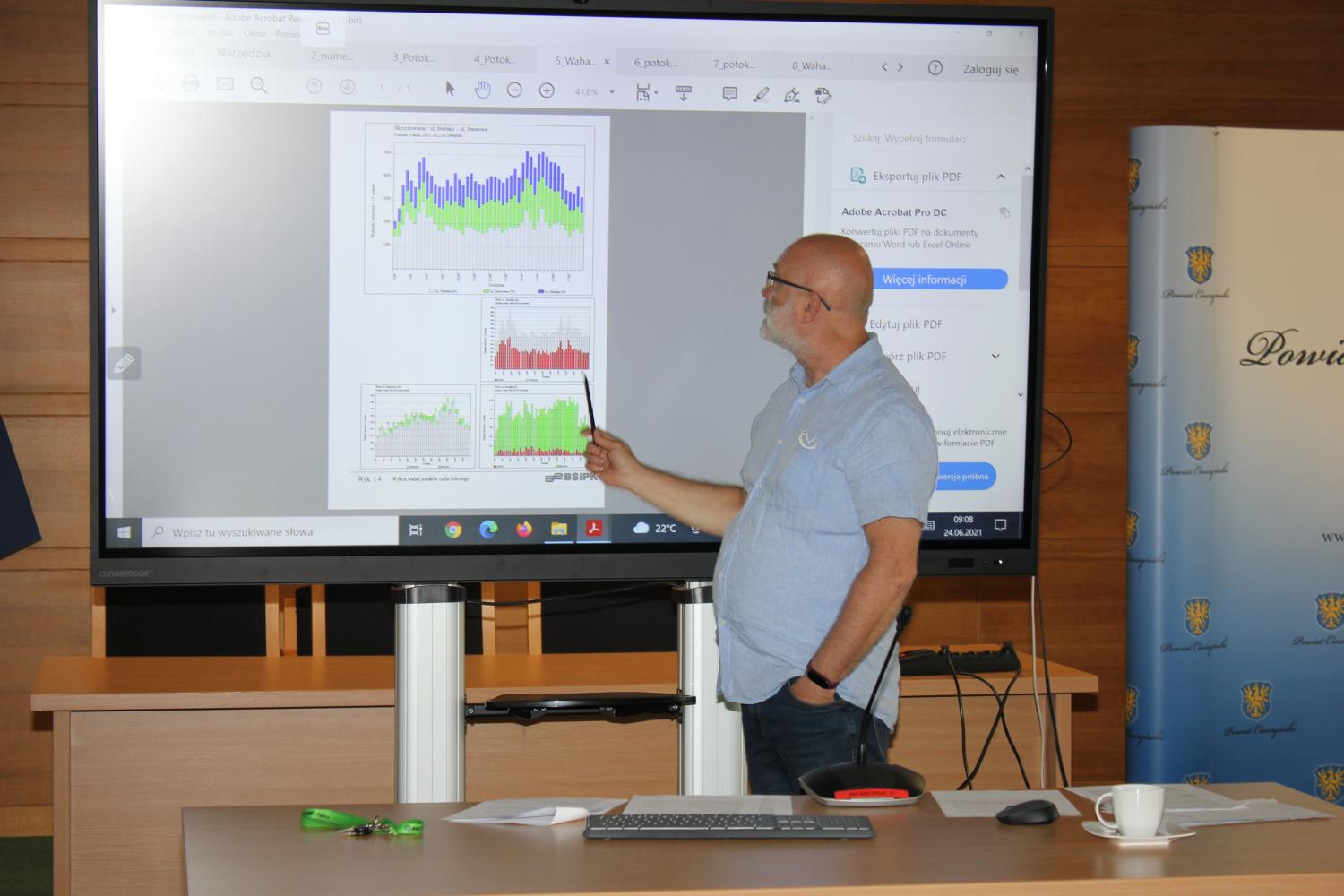 W czwartek, 24 czerwca 2021 r. w siedzibie Starostwa Powiatowego w Cieszynie odbyło się spotkanie Zarządu Powiatu Cieszyńskiego z Burmistrzami Miasta Cieszyna, przedstawicielami Powiatowego Zarządu Dróg Powiatowych w Cieszynie i Miejskiego Zarządu Dróg, na którym Antoni Kowalski, przedstawiciel Biura Studiów i Projektów Komunikacji Sp. z o.o. z Katowic przedstawił opracowane koncepcje wariantowe dla zadania pn.: „Rozbudowa drogi powiatowej 2619S ul. Bielskiej w Cieszynie na odcinku ok. 1 km wraz z głównymi skrzyżowaniami – z ul. Stawową i ul. Wiślańską”.