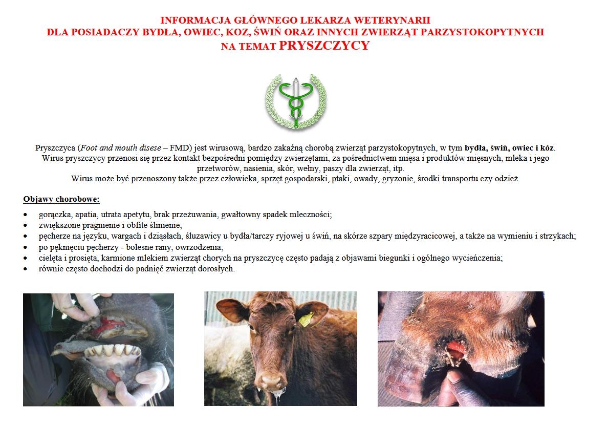 Celem jest poinformowanie Państwa o potencjalnych źródłach zakażenia wirusem z rodzaju Apthovirus, a także występujących objawach chorobowych u zwierząt.