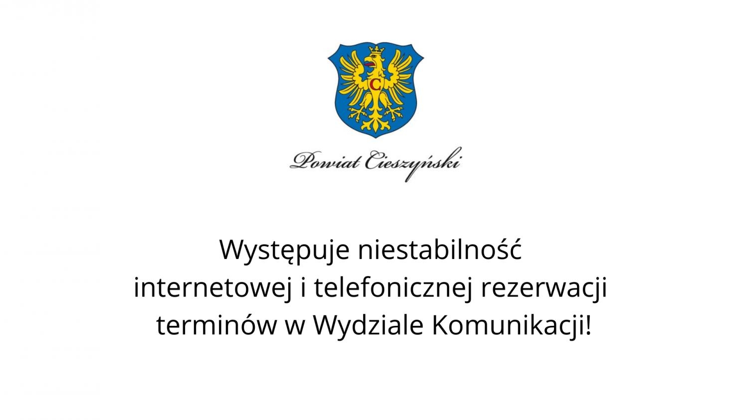W związku z awarią systemu kolejkowego w Wydziale Komunikacji Starostwa Powiatowego w Cieszynie, za której usunięcie odpowiada operator i dostawca sytemu firma PROMEDIO, występuje niestabilność działania kalendarza rezerwacji.