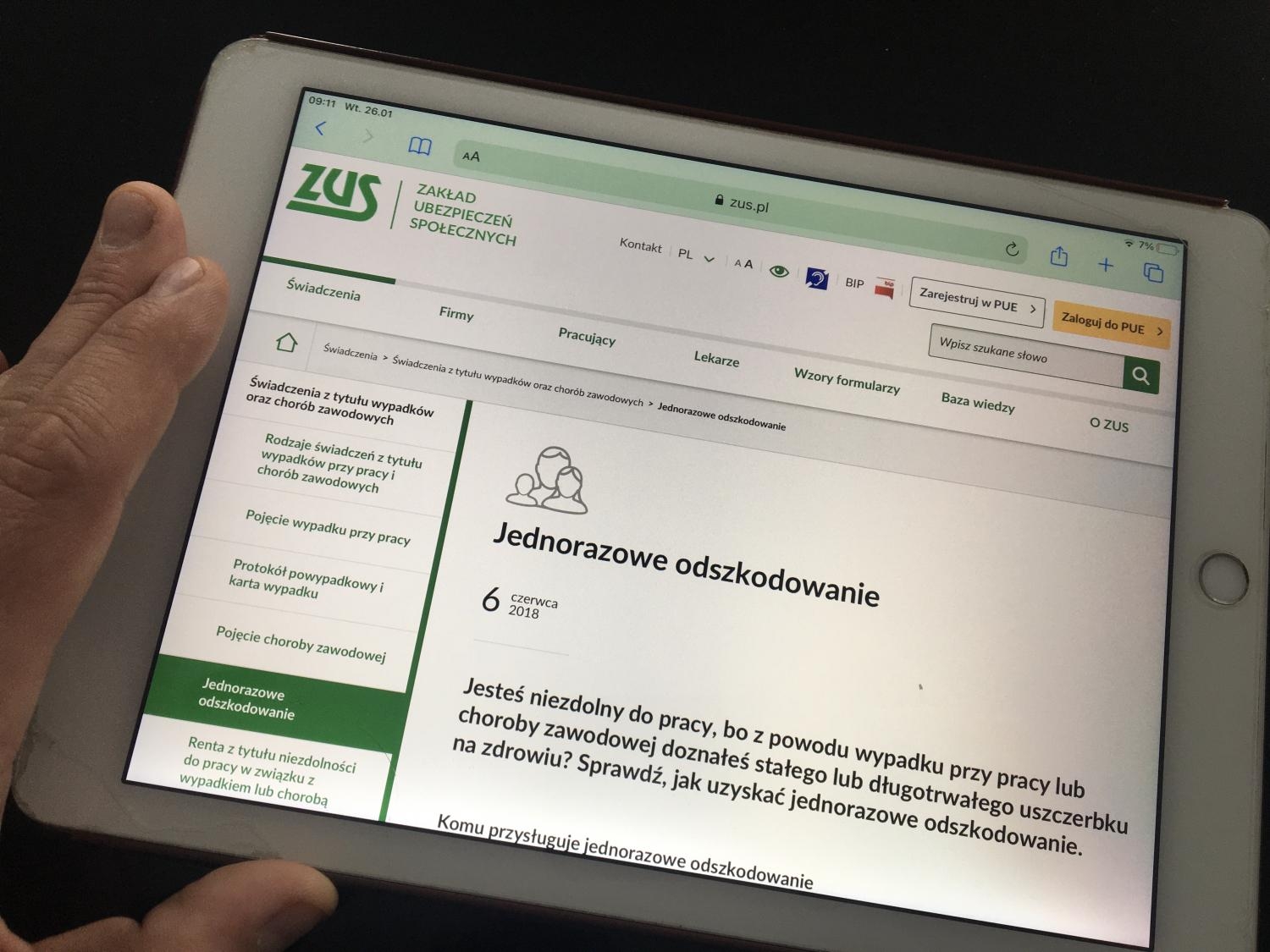 - Po dostarczeniu kompletnej dokumentacji do ZUS, stopień uszczerbku na zdrowiu oraz jego związek z wypadkiem przy pracy lub chorobą zawodową ocenia lekarz orzecznik ZUS lub komisja lekarska ZUS, po zakończeniu przez pacjenta leczenia lub rehabilitacji - informuje Beata Kopczyńska, regionalny rzecznik prasowy ZUS województwa śląskiego.