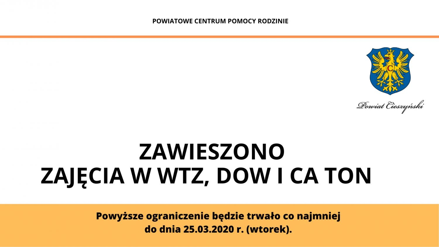 Zajęcia w WTZ, DOW I CA TON zawieszone do 25 marca 2020 r.
