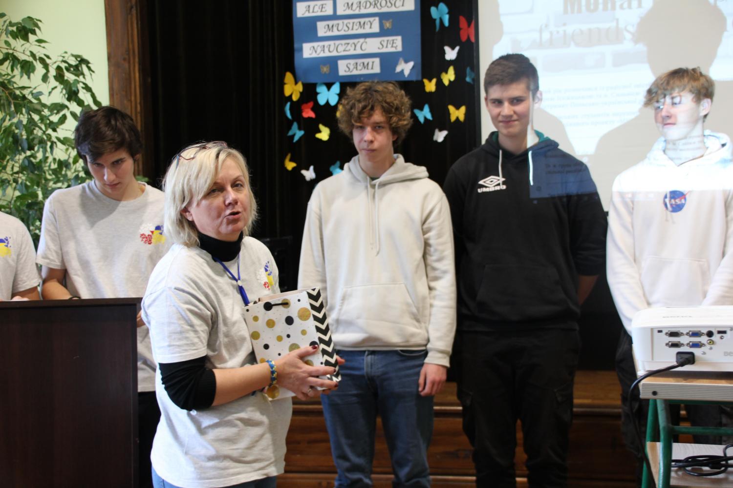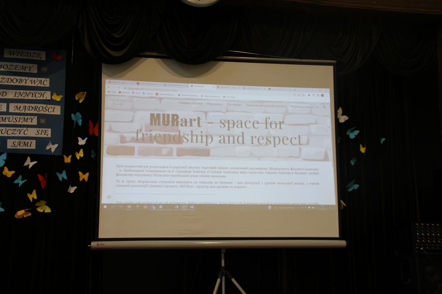 Podczas uroczystości, która odbyła się w auli ZST - zostało przedstawione podsumowanie działań projektu. Uczestnicy zaprezentowali wykład o najciekawszych muralach w Polsce, przedstawili fotorelacje projektu, opowiedzieli o swoich doświadczeniach o współpracy z młodzieżą ukraińską, a na koniec zaśpiewali piosenkę, która była wykonywana podczas pięciodniowego pobytu ukraińskich uczniów w Cieszynie. Co ważne - w ramach projektu powstał również słownik polsko-ukraiński.