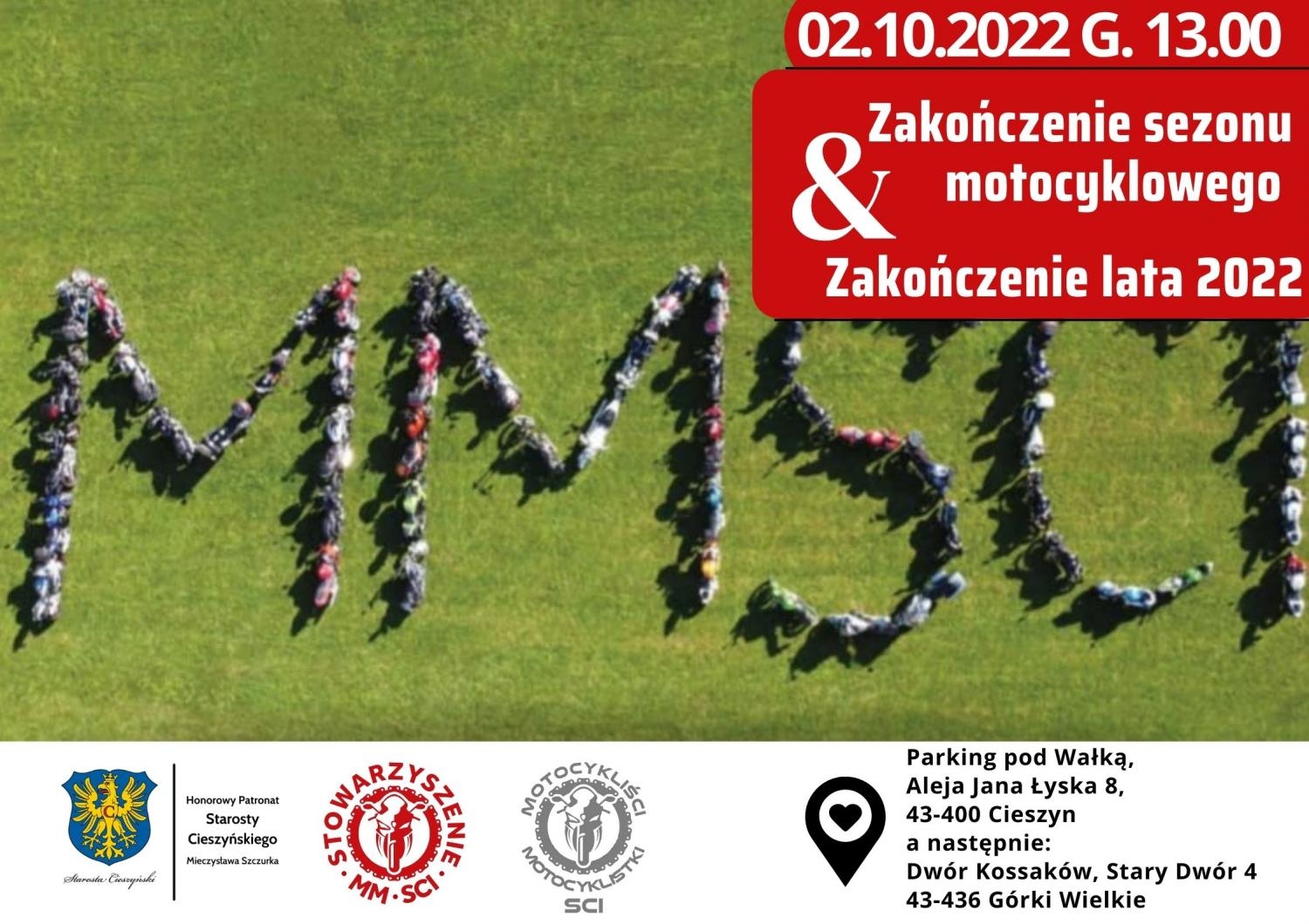W niedzielę 2 października 2022 r. Stowarzyszenie MM SCI, grupa Motocykliści i Motocyklistki SCI oraz Powiat Cieszyński wspólnie organizują zakończenie sezonu motocyklowego.