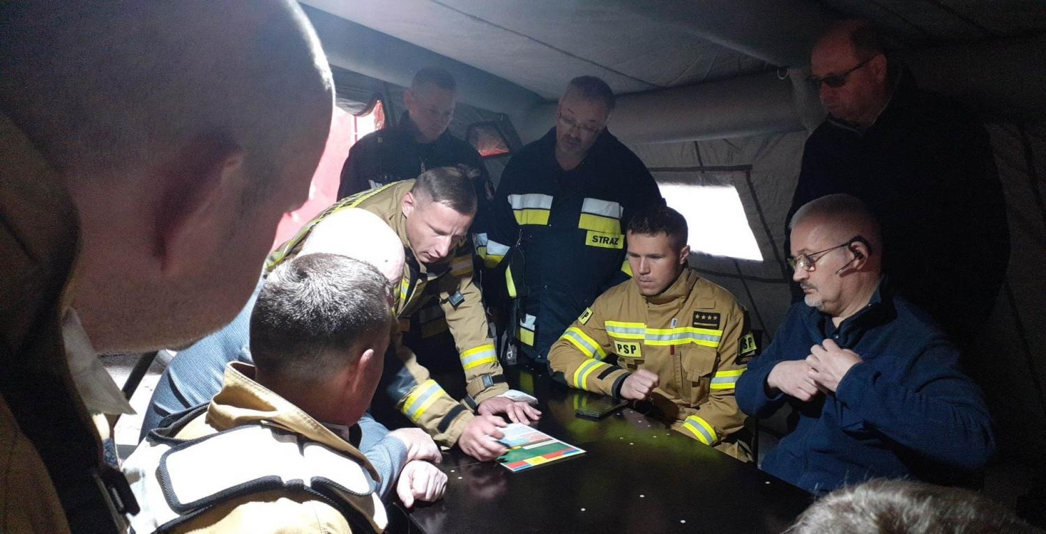 O godz. 14:00 zebrał się sztab kryzysowy z udziałem Jana Chrząszcza I Wicewojewody Śląskiego oraz Mieczysława Szczurka Starosty Cieszyńskiego. Uczestniczyli w nim także Andrzej Kondziołka, Wójt Zebrzydowic, Grzegorz Sikorski, Wójt Hażlacha, Gabriela Staszkiewicz, Burmistrz Cieszyna, Tomasz Branny, Wójt Dębowca oraz przedstawiciele Wojewódzkiego Inspektoratu Ochrony Środowiska w Katowicach. Naradę sztabową poprowadził Michał Pokrzywa, Komendant Powiatowy Państwowej Straży Pożarnej w Cieszynie.