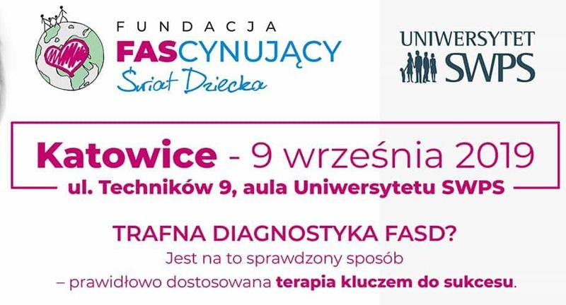 W związku z obchodami 20-lecia Światowego Dnia FAS oraz Dnia Świadomości FASD w dniu 09.09.2019r. Fundacja Fascynujący Świat Dziecka przy współpracy z Uniwersytetem SWPS organizuje Międzynarodową Konferencję Szkoleniową pt. „Trafna diagnostyka FASD? Jest na to sprawdzony sposób – Prawidłowo dostosowana terapia kluczem do sukcesu" w Auli Uniwersytetu SWPS w Katowicach ul. Techników 9.