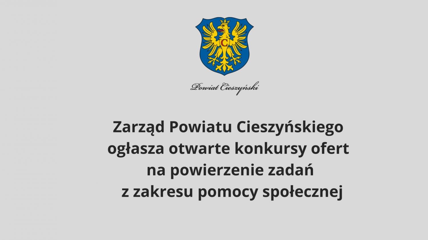 Zarząd Powiatu Cieszyńskiego ogłasza otwarte konkursy ofert na powierzenie zadań z zakresu pomocy społecznej