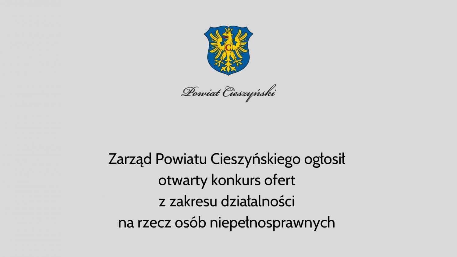 Zarząd Powiatu Cieszyńskiego ogłosił otwarty konkurs ofert na zlecanie przez Powiat Cieszyński zadań z zakresu działalności na rzecz osób niepełnosprawnych dotyczących rehabilitacji społecznej osób niepełnosprawnych.